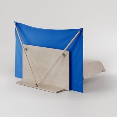 Backdrop is the headboard designed by young Swiss-French designer Julie Richoz, conceived to give the bed three-dimensionality and make it the focal point of the room. Inspired by loft-style interiors, where the bed often takes centre stage, Richoz envisioned a headboard that could stand independently within the space. The project stems from the simple, spontaneous gesture of hanging a piece of fabric on the wall to create intimacy, protection or separation. With Backdrop, this gesture is translated into a design object that “dresses” the bed with a large suspended textile panel. The result is a piece of furniture that combines lightness with scenic presence, bringing warmth and character to the environment.