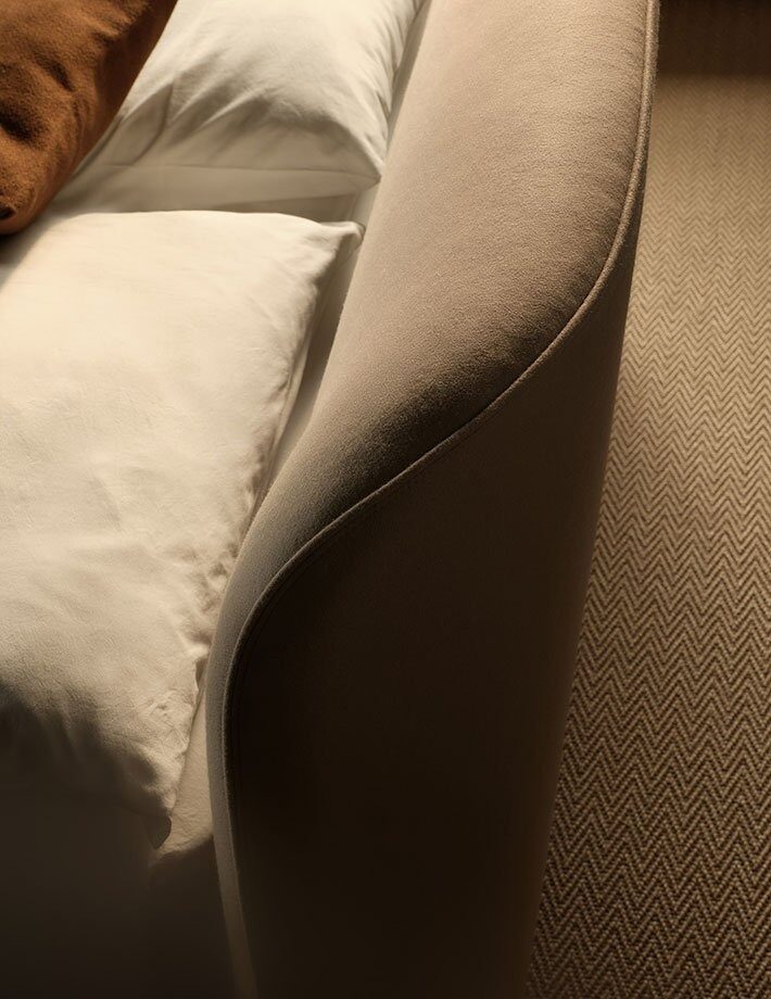 Corolle is a bed that adapts effortlessly to a variety of interior styles, fitting gracefully into both classic and contemporary settings. Its refined yet understated aesthetic makes it a versatile choice — ideal for domestic spaces that seek harmony, functionality and visual balance.