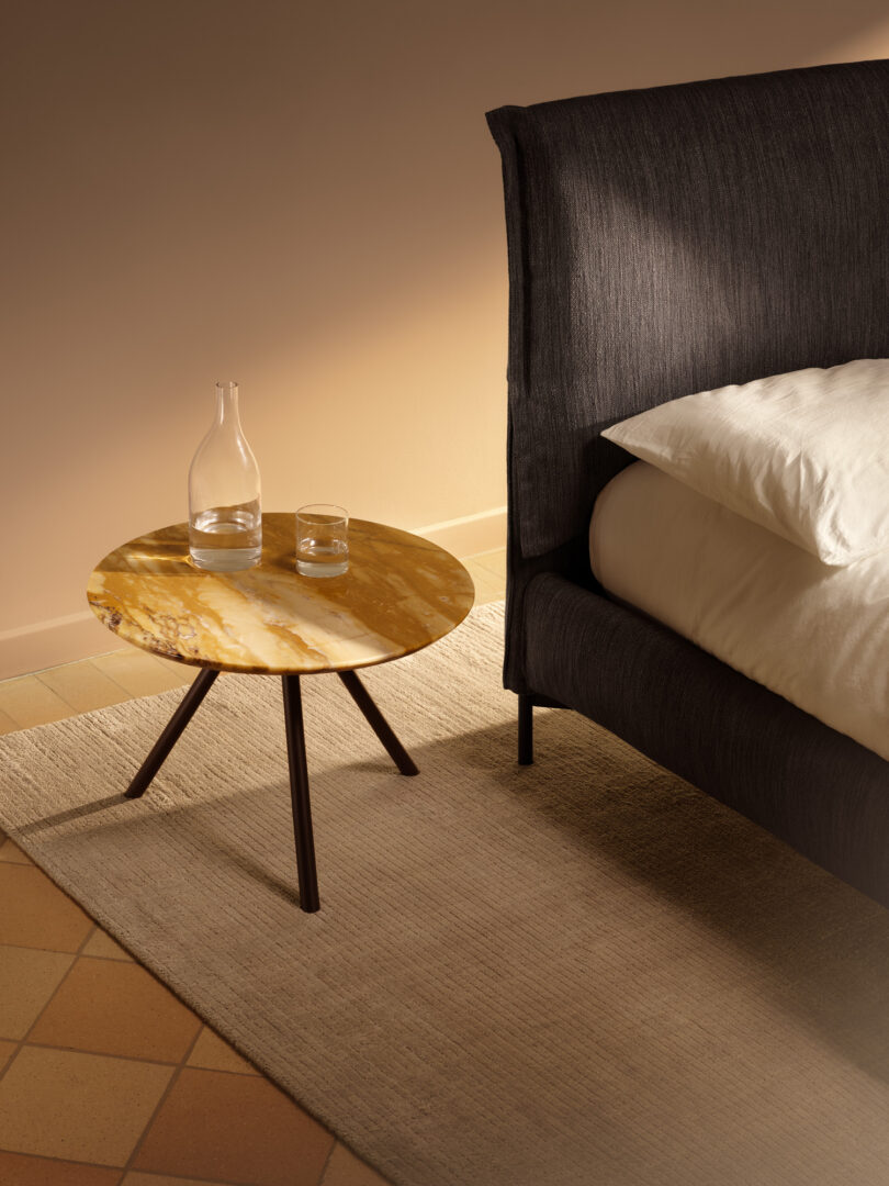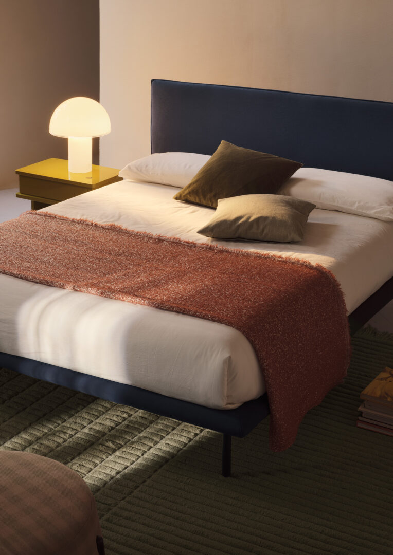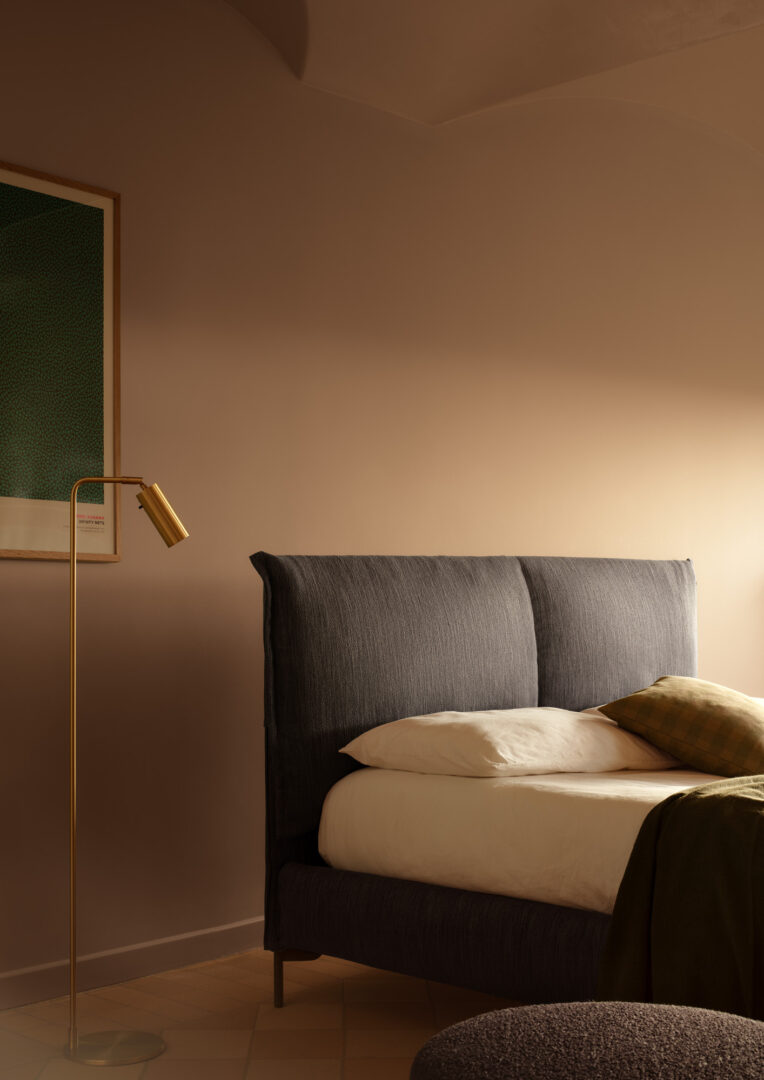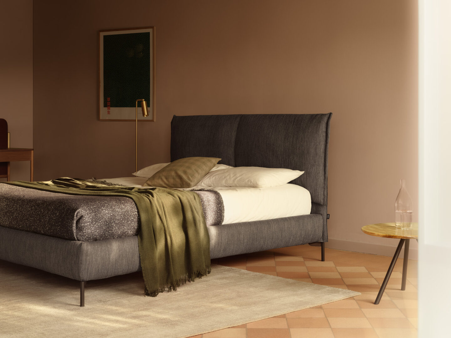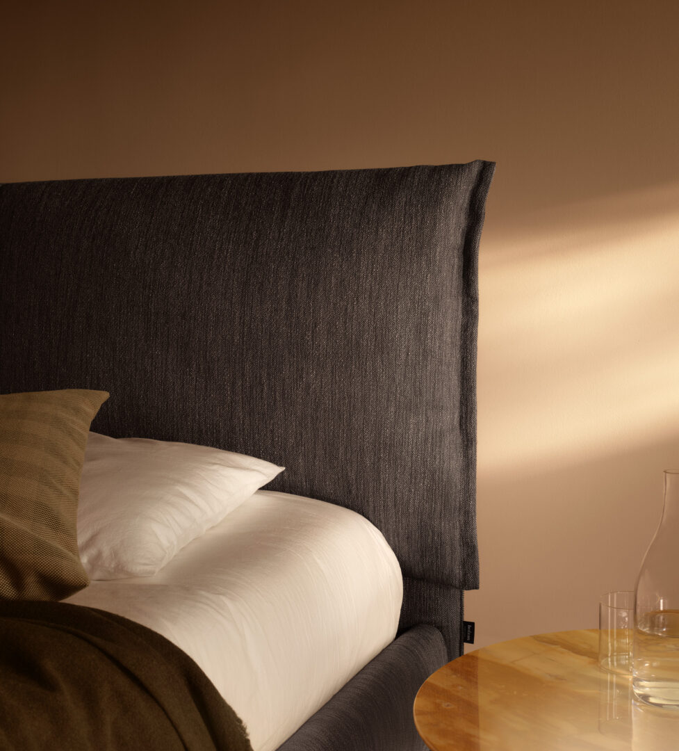 Its understated yet carefully detailed design allows it to blend effortlessly into a range of interior styles: whether in a modern, minimalist bedroom or a more classic and enveloping space, Eden integrates with quiet elegance, becoming a focal point without ever being intrusive. The generous padding and continuous upholstery reflect a thoughtful pursuit of quality and comfort, while its balanced proportions invite you to slow down, breathe deeply, and carve out a space entirely your own.