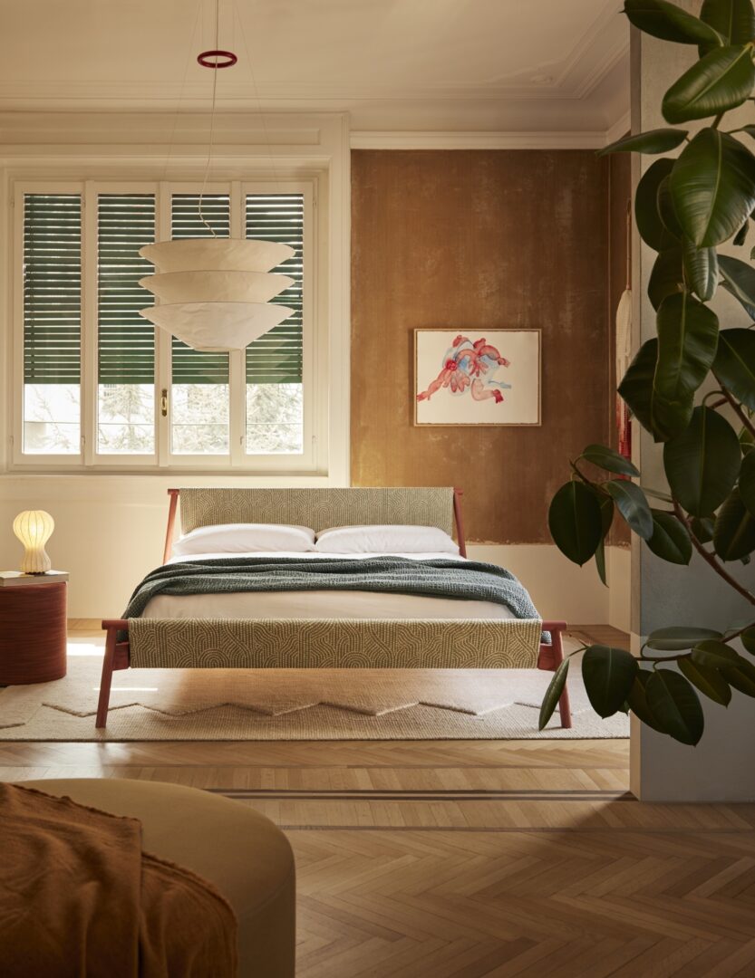 Jack-e Fabric is a re-edition of the original Jack bed, which was first conceived with a metal frame and is now reinterpreted with a new structure in ash wood, stained using natural finishes that highlight the grain and character of the material. The project retains the essential nature of its original form, while introducing a warmer, more tactile language that adapts seamlessly to different settings.