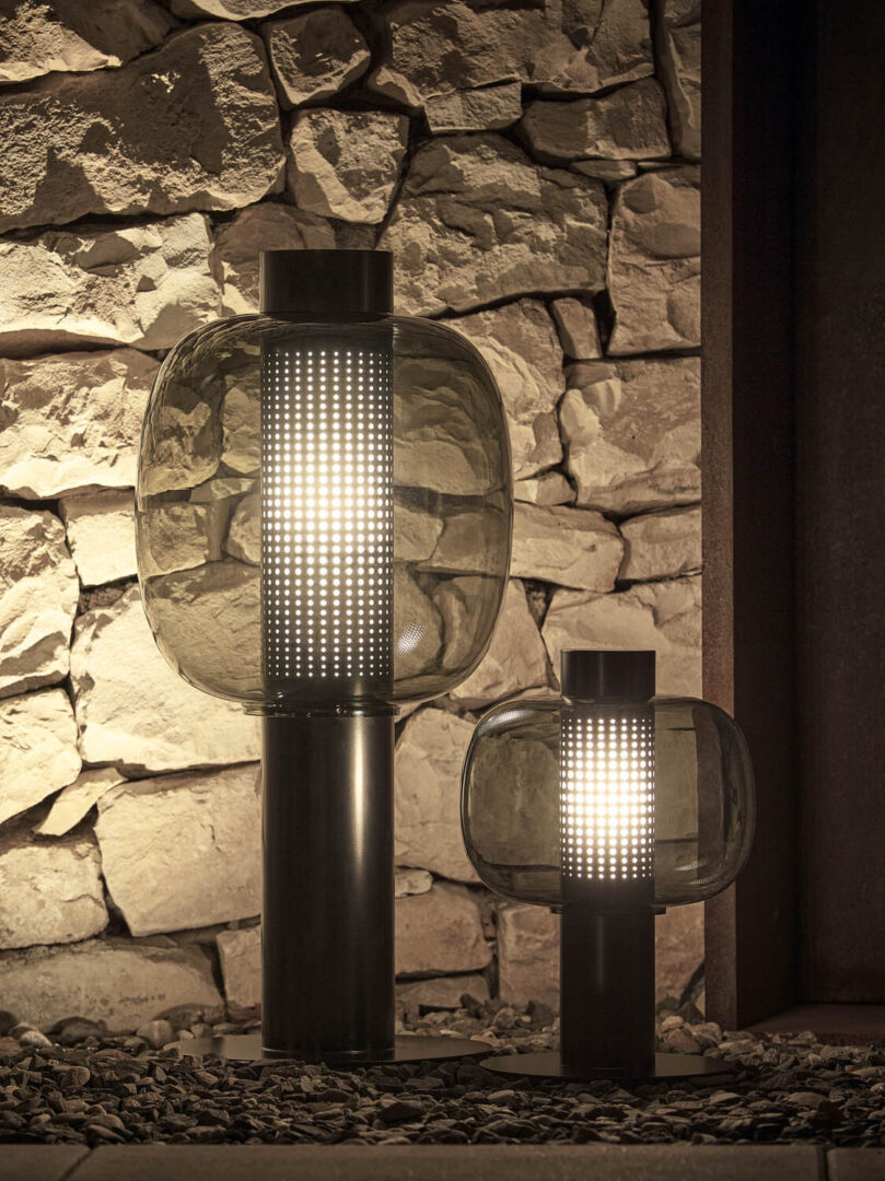 Manufactured in compliance with the IP44 rating for outdoor use, the new light makes use of a simple stainless-steel base finished in an environmentally friendly weather-resistant powder coating. The easily removable LED light source, which can withstand below-freezing temperatures, casts a gentle glow through a diffusor and laser-cut openings in the stainless steel. The likeness to the traditional bonbori lamp is achieved with an elegant handblown glass shade, an extraordinary piece crafted from multiple layers of carefully moulded glass.