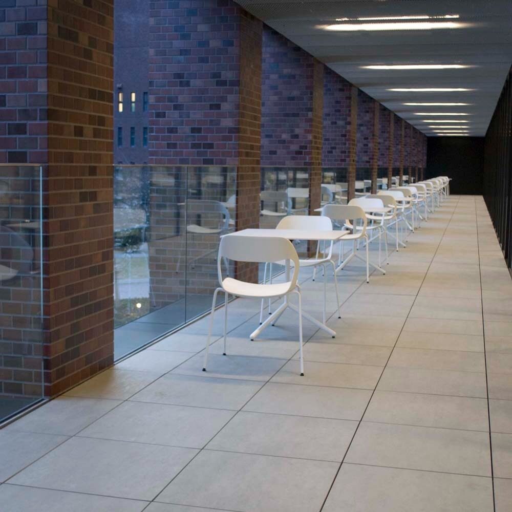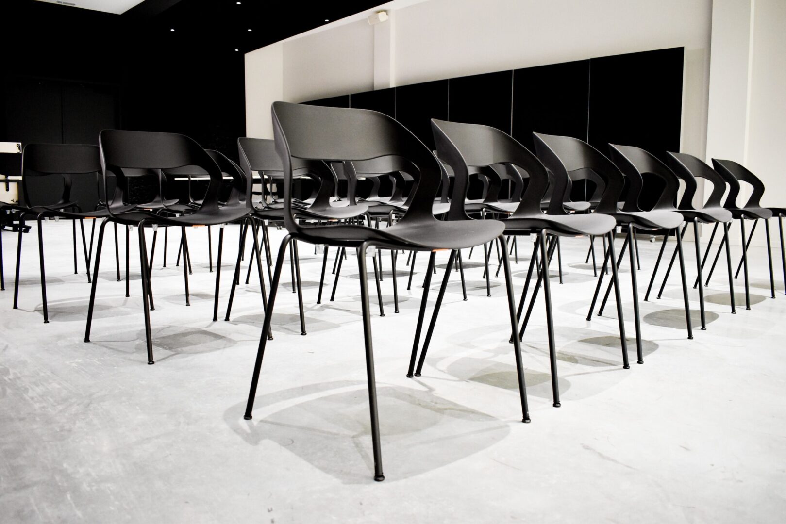 Shell in polypropylene, with seat upholstered or fully upholstered. Four legs in tubular steel, chromed or powdercoated.