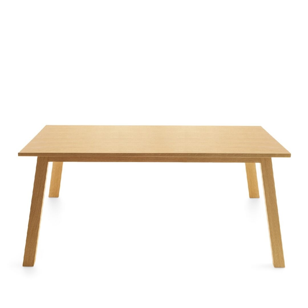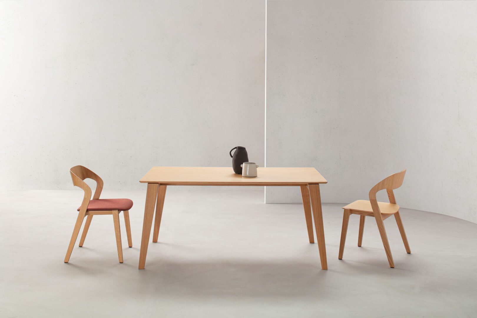 The Oxton family of tables is characterised by simple lines that highlight the handcrafted quality of the woodwork in different settings. They are available with a height of 74 cm or 110 cm and in numerous dimensions, square and rectangular, with bases in oak and tops in wood or laminate, with the possibility of adding office equipment.