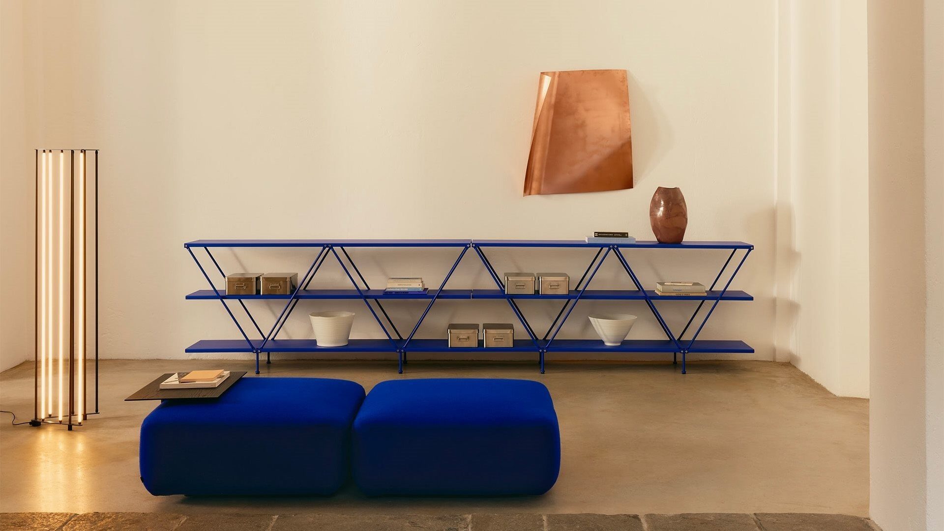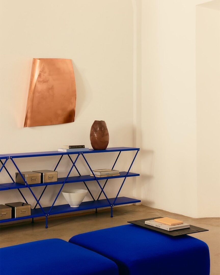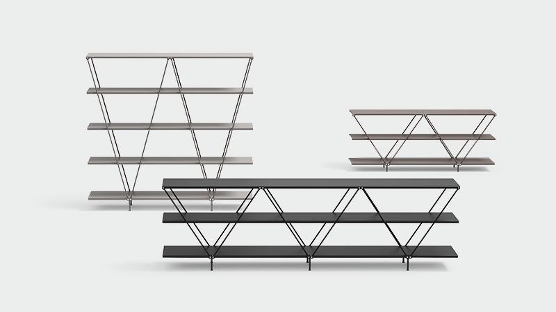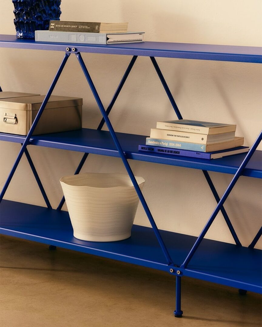 The Zinco bookshelf is a furnishing accessory with a strong character and refined industrial style. Made entirely of metal, it stands out for its sturdiness and essential design. The solid, geometric supporting structure holds metal sheet shelves that provide visual lightness while maintaining high resistance.