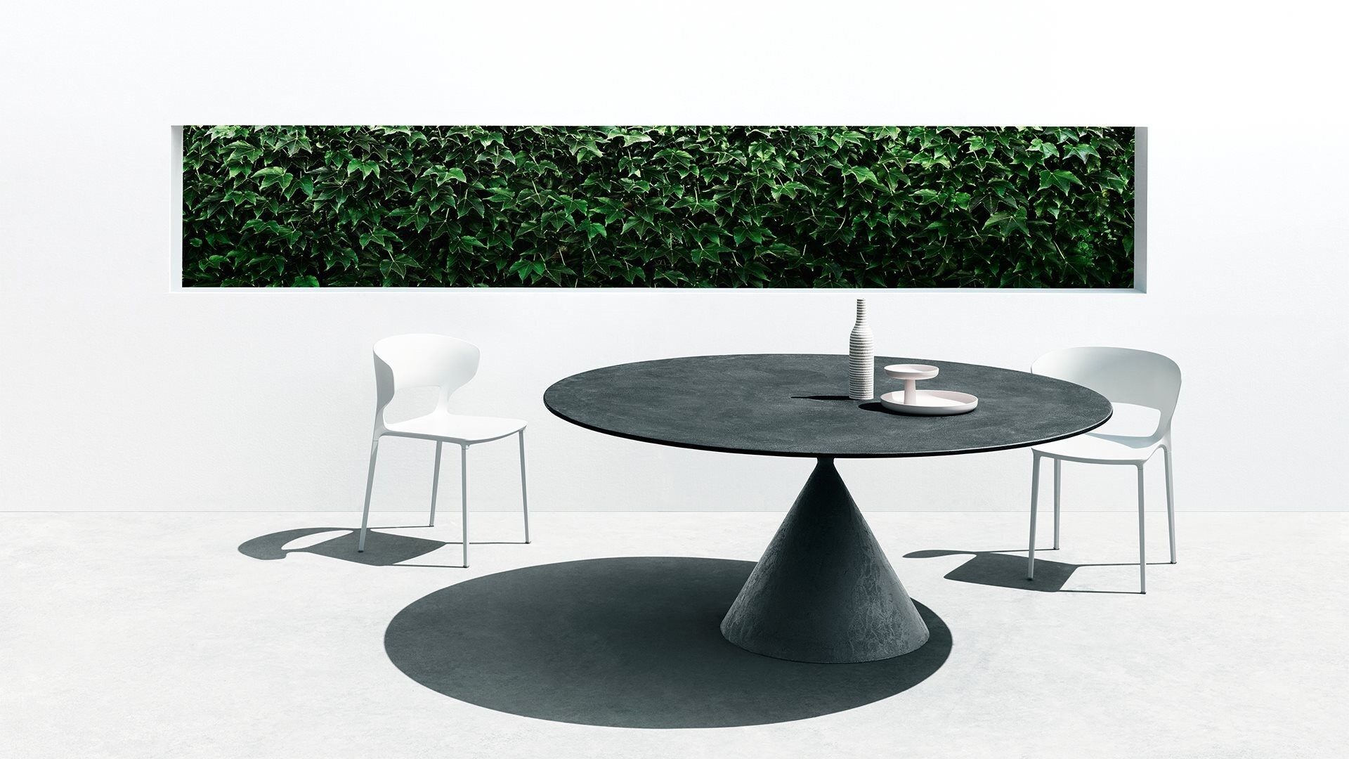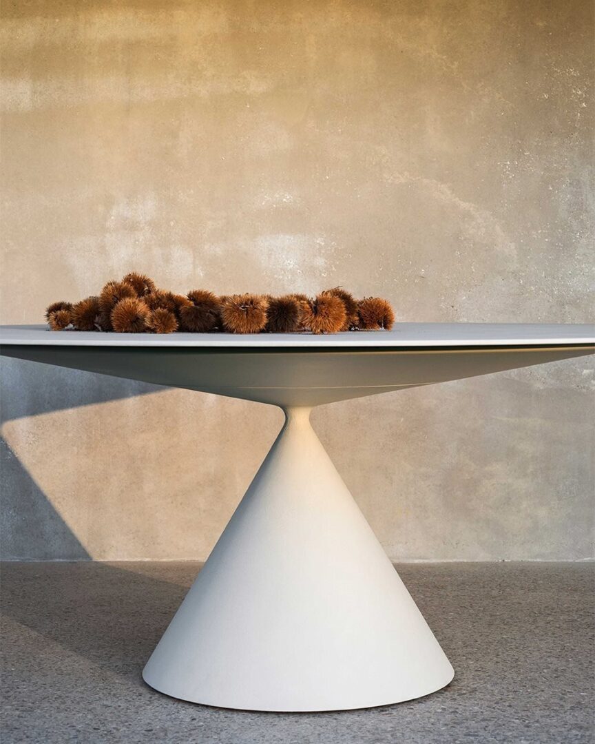 Sculpture table, a perfect synthesis of beauty and harmony of proportions, presented at the 2015 Salone and awarded multiple prizes: Iconic Design Award 2015, Good Design Award 2016, Red Dot Award for Product Design category 2016. In the meeting of two volumes, the perfect balance of one over the other is achieved.
