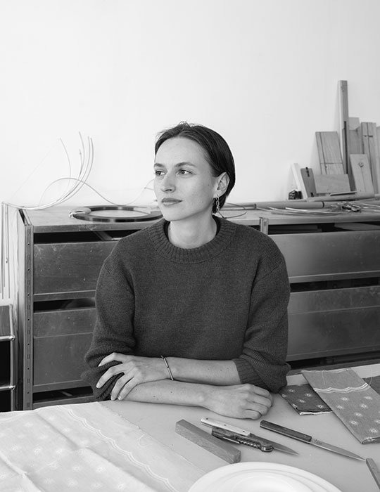 Julie Richoz (born 1990) is a Swiss-French designer. After graduating from ECAL – University of Art and Design in Lausanne, she worked as a project assistant for Pierre Charpin. She then opened her own studio in Paris, where she developed her personal language through objects. Julie works between unique pieces and industrial production, exploring what connects these two worlds. In both, she is fascinated by the savoir-faire, passion, and precision in the handling of materials.