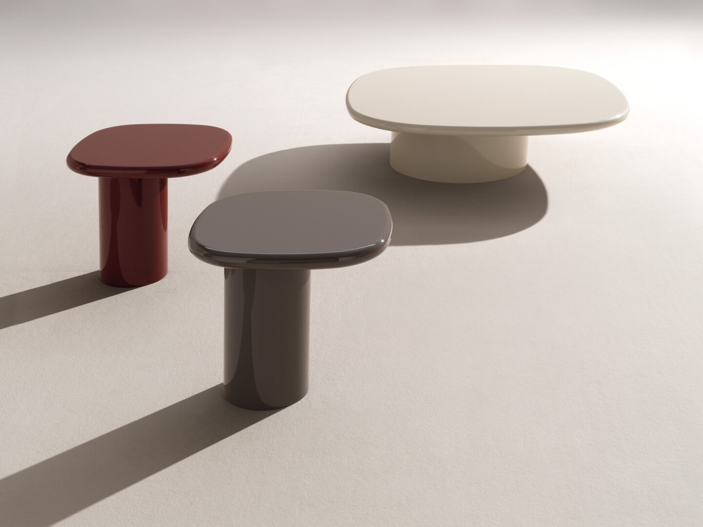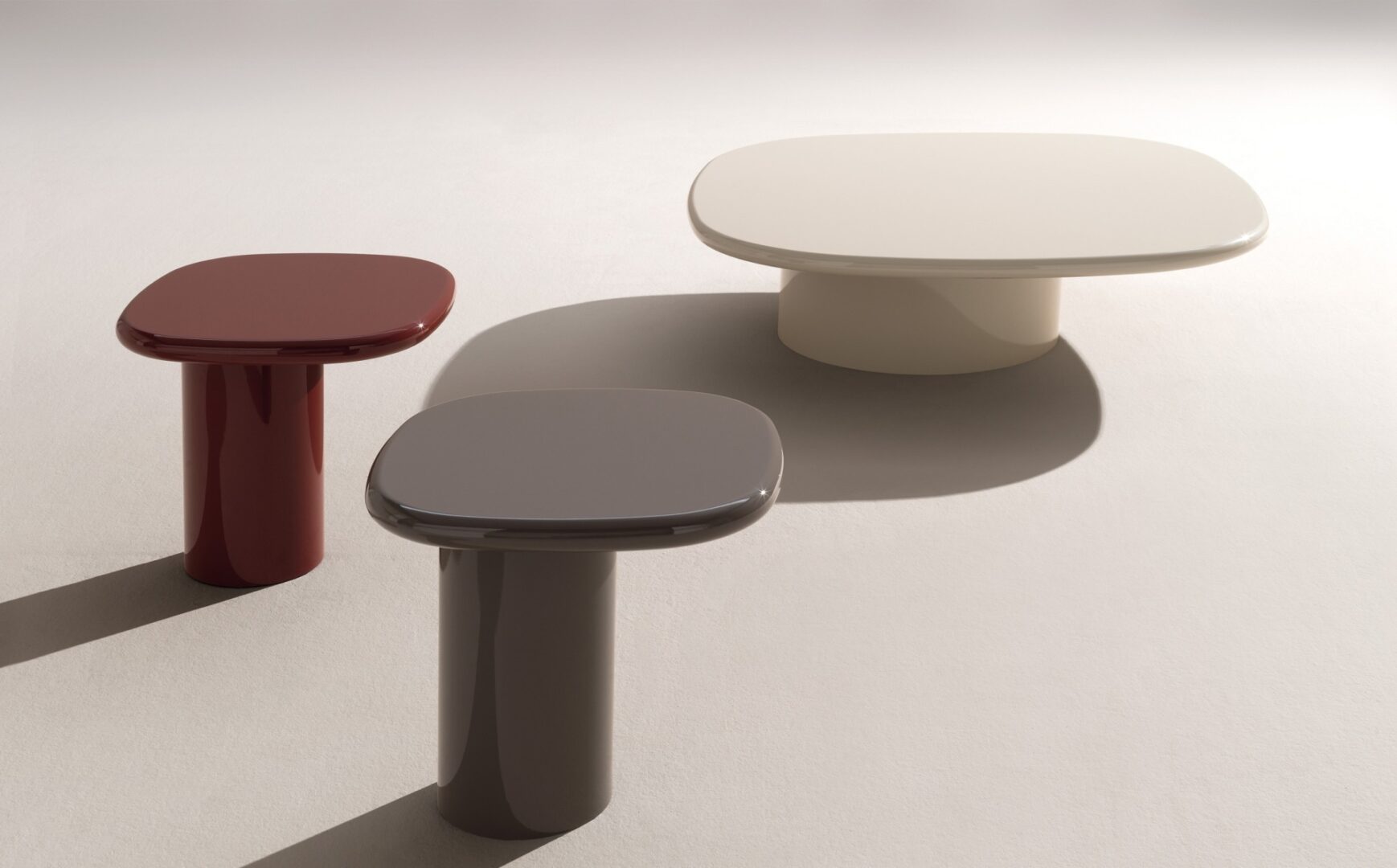 The coffee tables are distinguished by their rounded, harmonious shapes, which add a touch of fluidity and lightness to the space. The bold colour contrasts enhance their dynamism, reinforcing the character of the collection. Perfectly integrated with other furnishing elements, these coffee tables combine functionality and refinement, becoming discreet but essential protagonists of the environment.