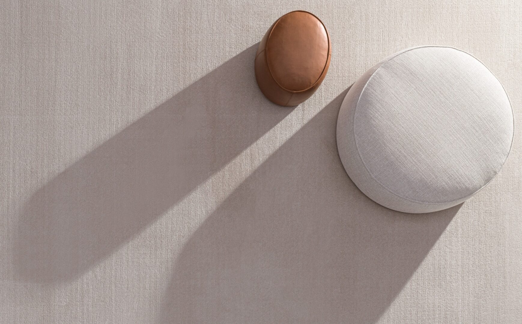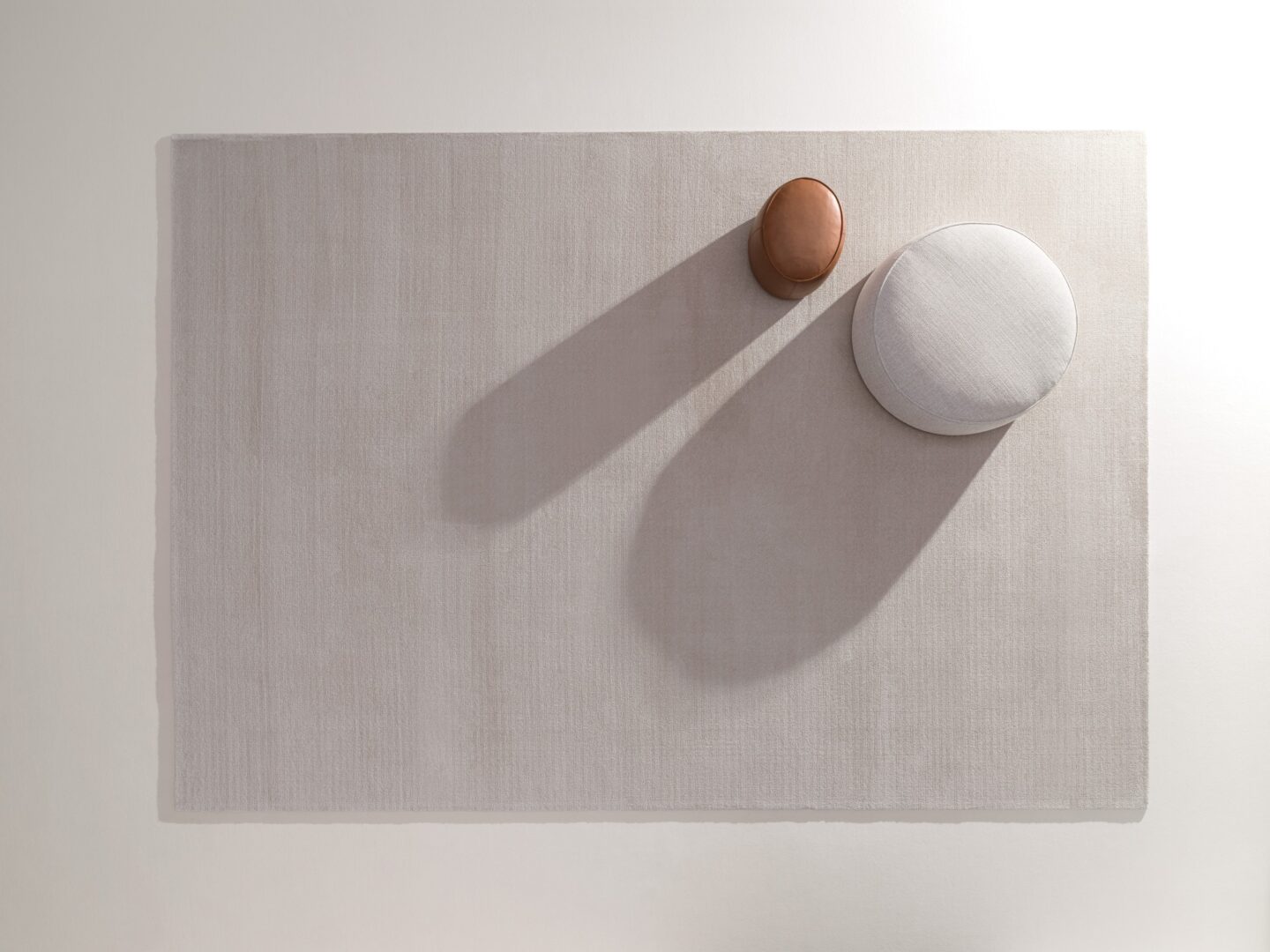 Moss is a rug made of 100% polyester yarn, dyed in four colours: sand, rope, pearl grey and smoky grey, with a velvet weave. The border is finished with a folded tape. The rug has a very thick pile surface, giving the product a pleasant softness and a luxurious appearance.