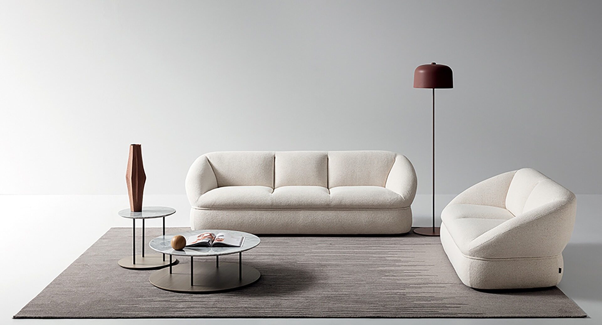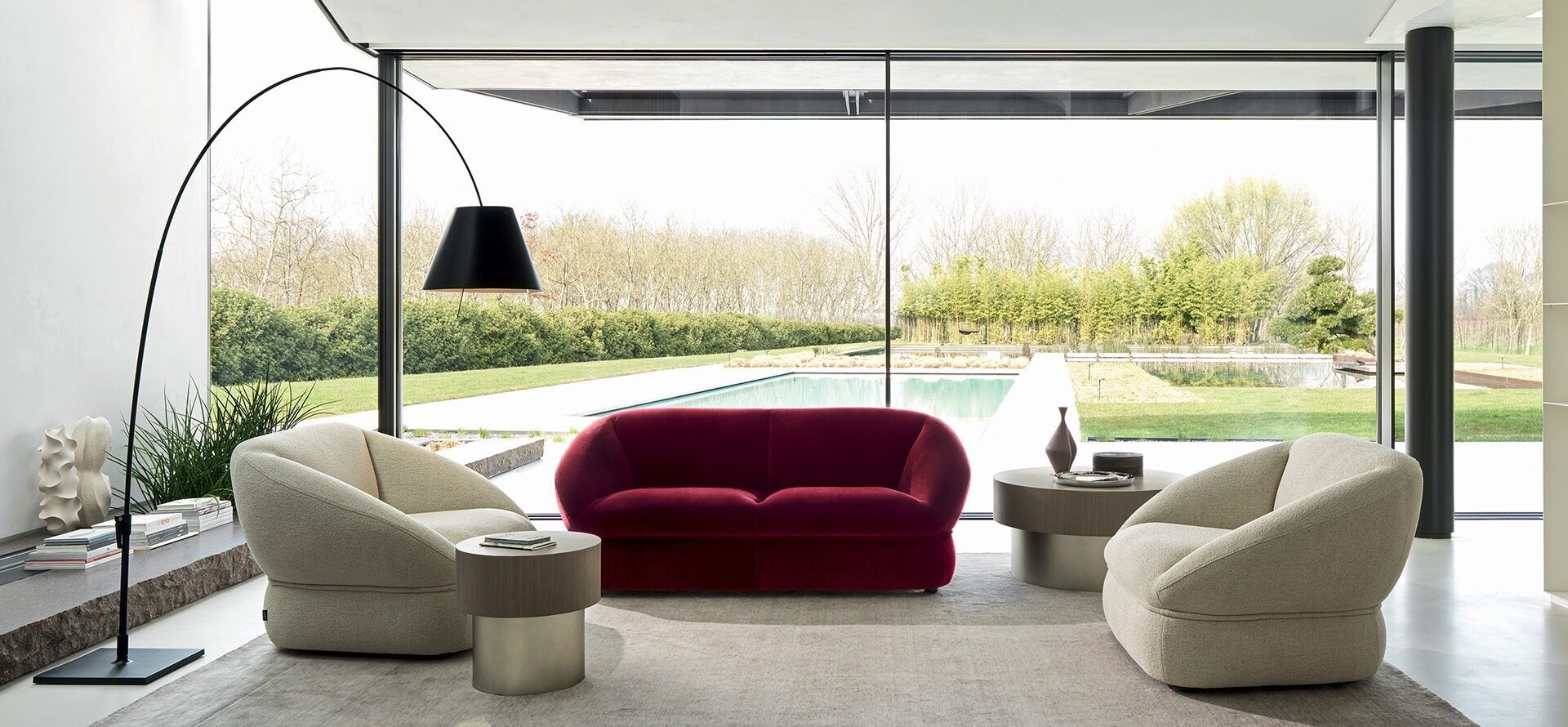 For Patrick Norguet, the sofa is more than a simple settee, it is the fulcrum of domestic living. This is why Alta elevates the very idea of comfort, translating it into a form that is soft, generous and welcoming, also visually. The volume of the sofa, inspired by a ball of cotton, is generated by the horizontal element that compresses the material and defines its form, inviting users to take the weight off their feet and relax.