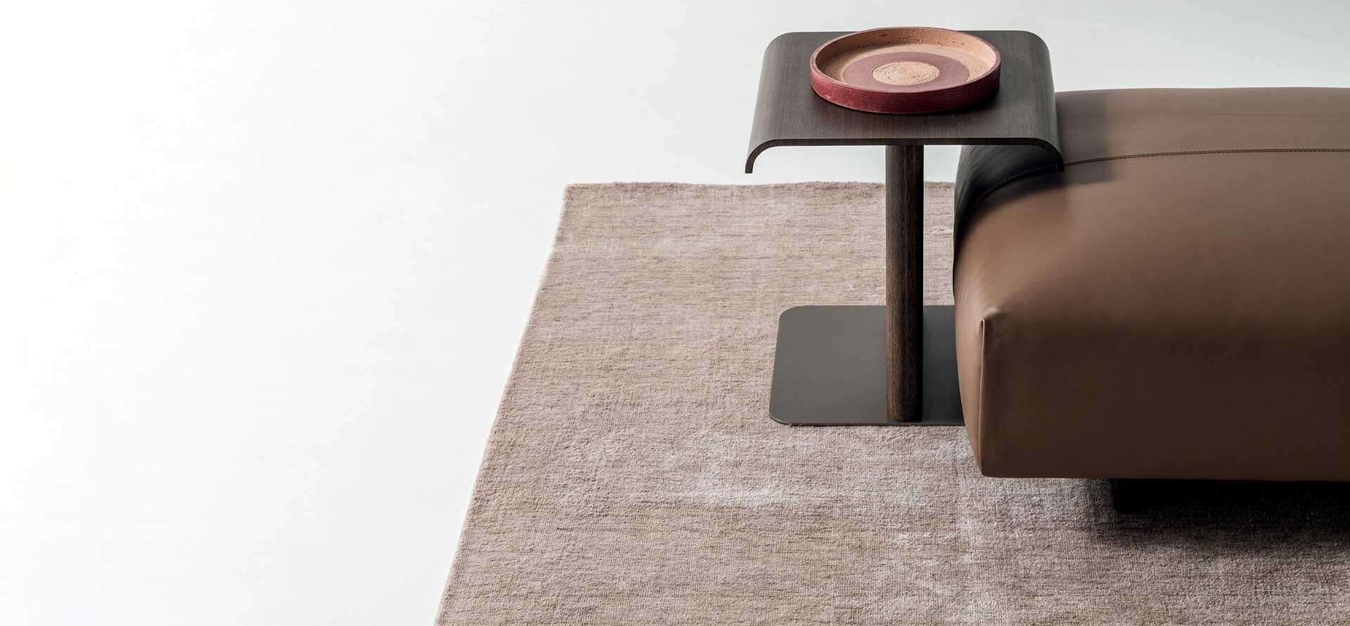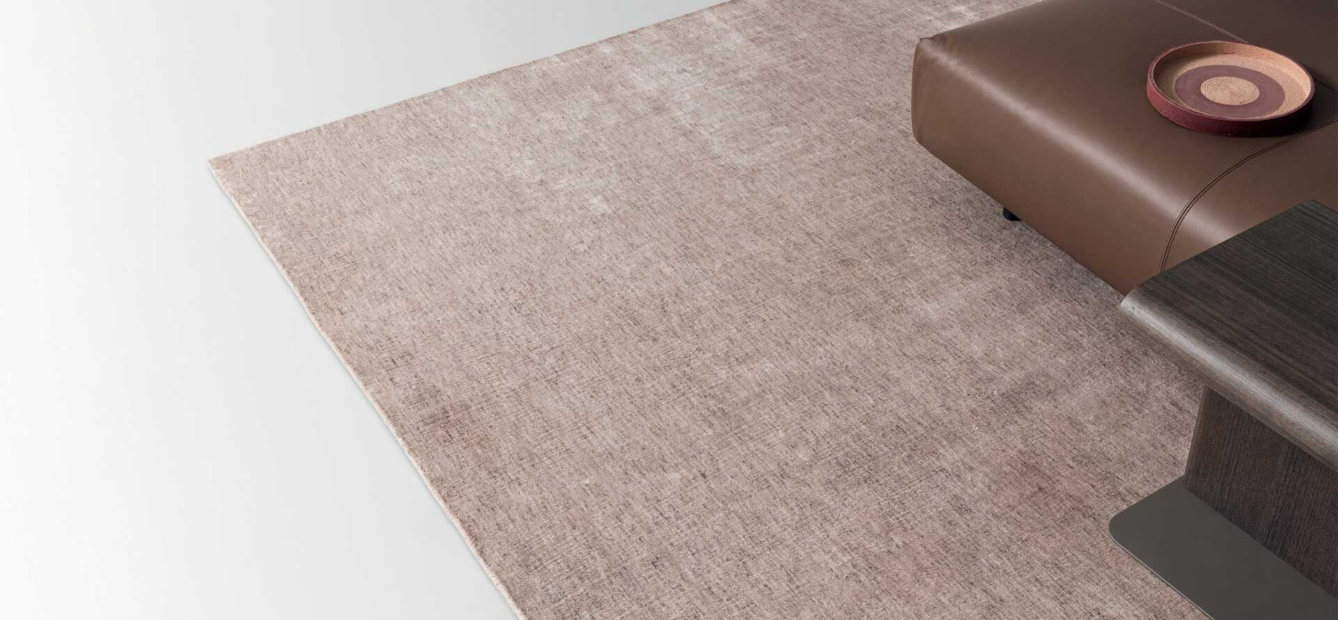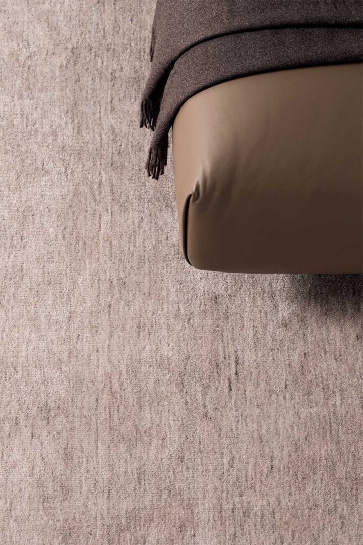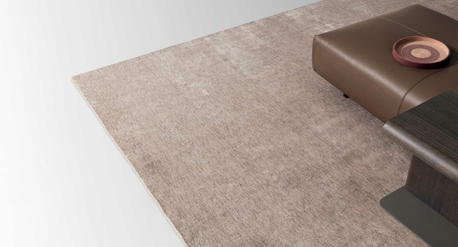 A rug whose tonal shades glimmer evocatively thanks to the light and shade effects of the bamboo yarn. Versatile, compact and resistant, Glint is available in four colour variants and adapts to different styles and spaces. Made on a loom, it has a hand-stitched edge.