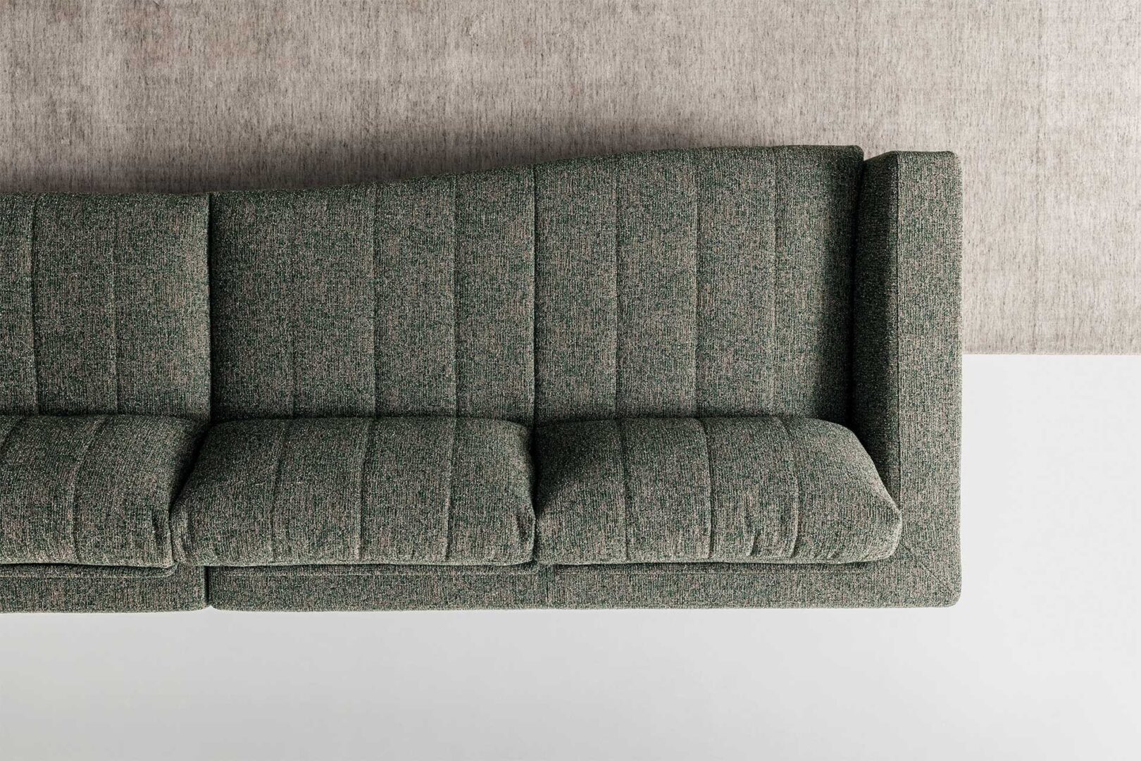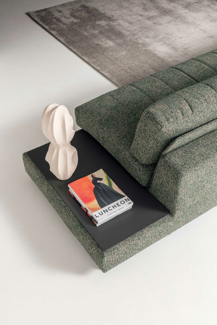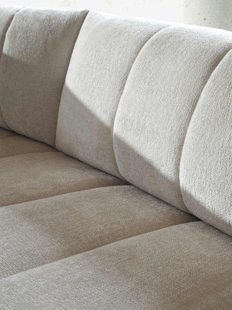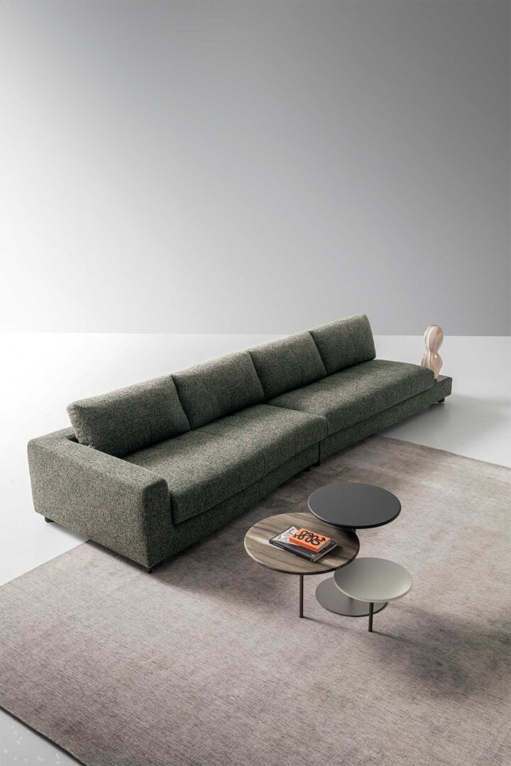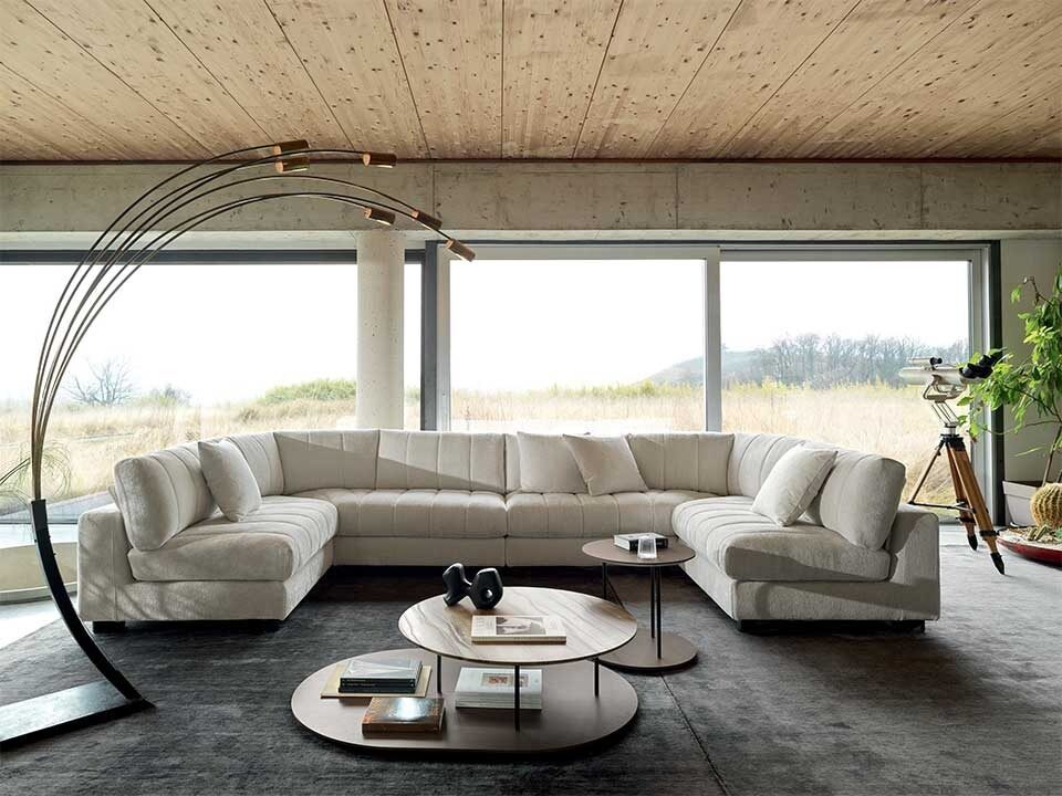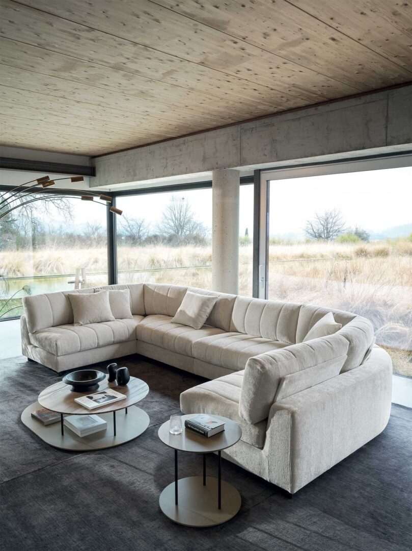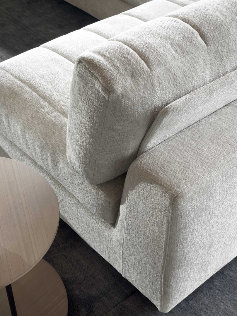 Stefano Spessotto designs an upholstered sofa with simple lines whose expressive power lies in its soft curves and distinctive vertical cuts. The combination of the various modules creates different configurations – from the classic linear sofa to the double chaise longue – all of which notable for their unpretentious elegance, ideal for adding a sophisticated on-trend touch to contemporary rooms.