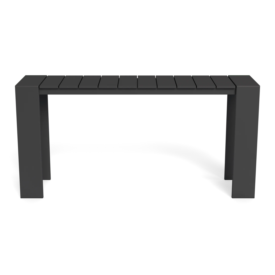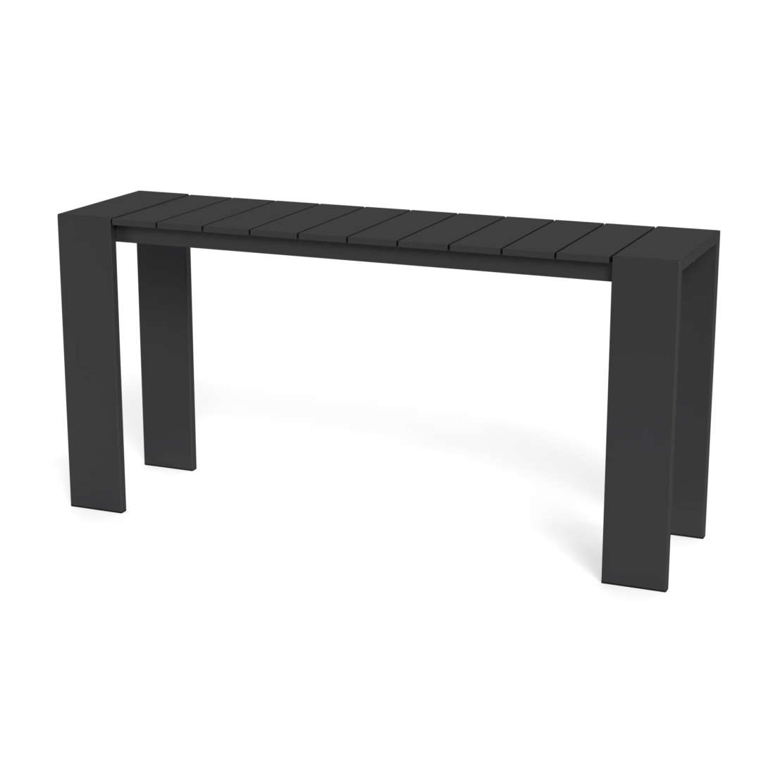 Our Hayman collection is a statement in simplicity with clean angles and modern styling. Defined by wide legs, our Hayman 61" Console is our newest addition to the collection — enjoy our largest surface in slatted extruded aluminum in Asteroid or White that's streamlined yet functional. An indoor aesthetic meets outdoor performance with this modern console table made for a variety of spaces. Use it to entertain, lay out poolside snacks or towels, or fill space against the side of your home.