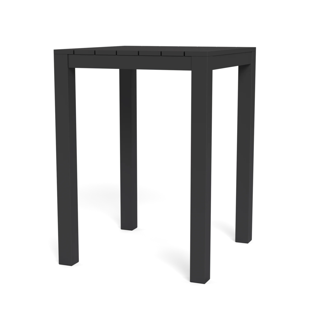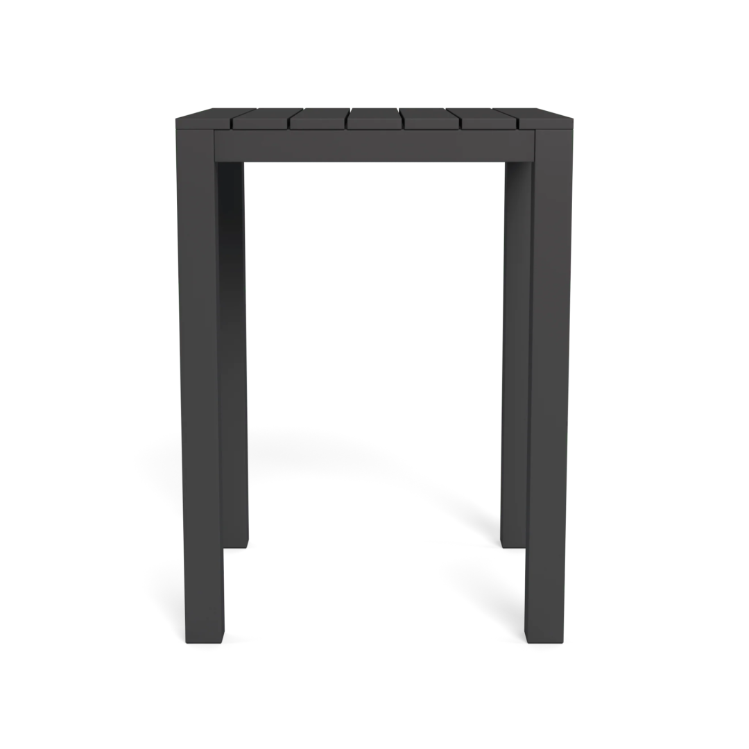 Our Pacific Aluminum collection features clean lines with a California rustic essence. The Pacific Aluminum Square Bar Table is the perfect gathering place — handcrafted in powder coated extruded aluminum with a simple slatted top for maximum functionality. Our smaller bar table, this piece effortlessly fits in any space, offering an ideal surface for entertaining.