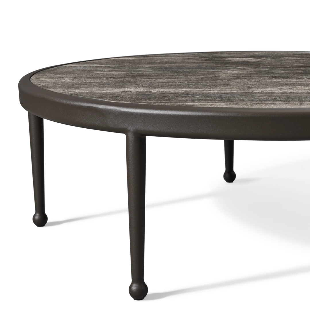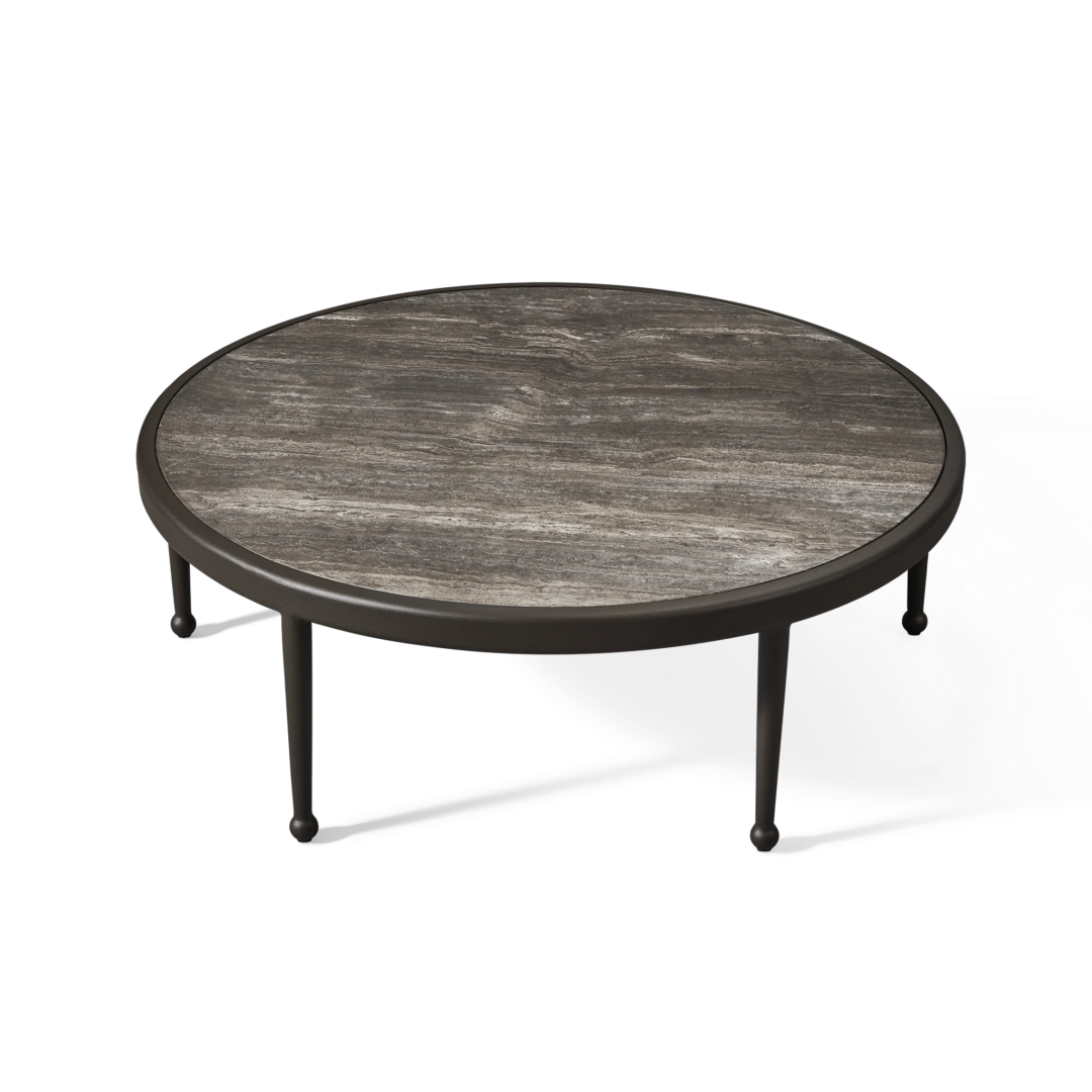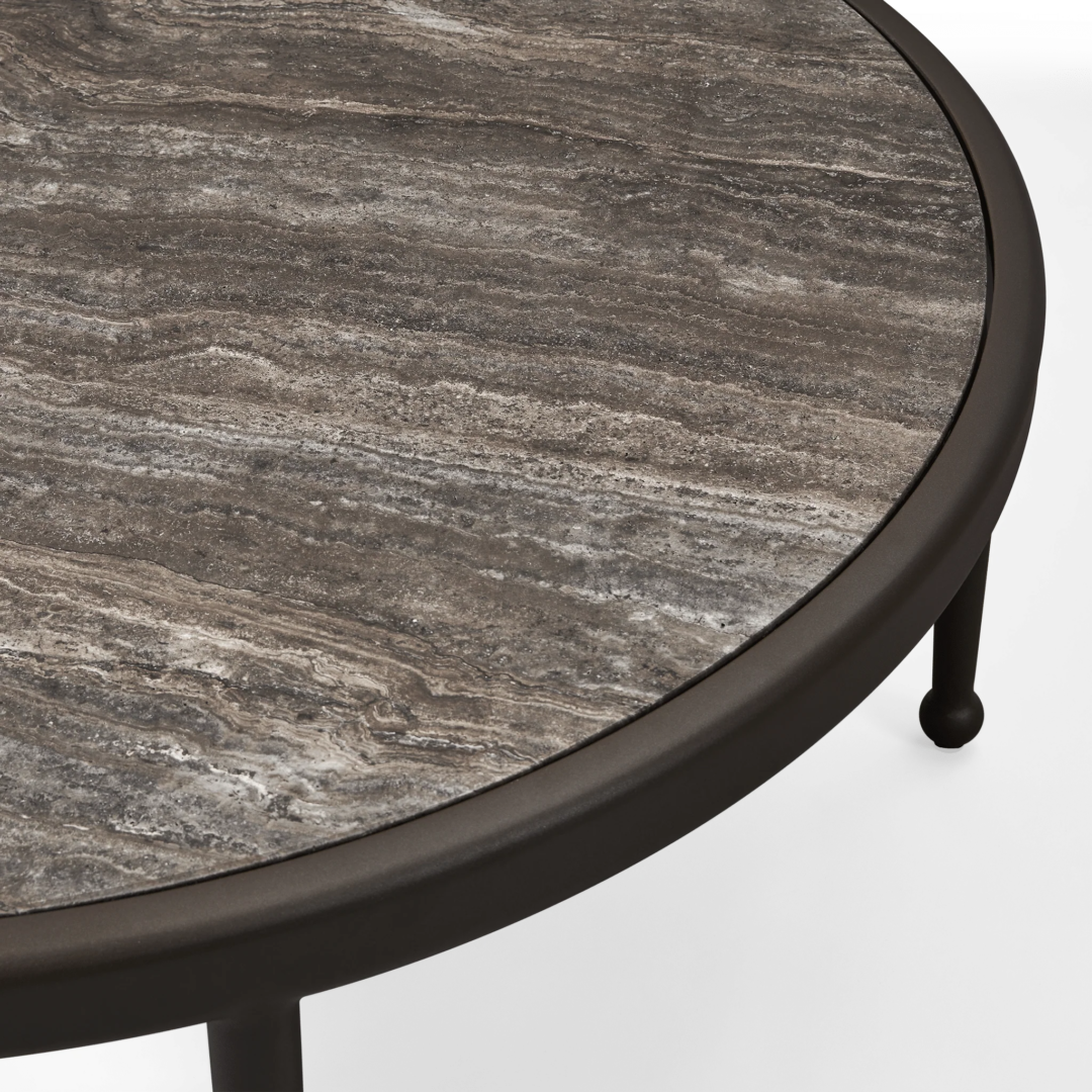 The Andre Round Coffee Table is inspired by classic wrought iron European furniture—featuring our signature powder coated Aluminium frame in a thinner style that creates an airy openness. An inset stone top showcases the elevated simplicity of the table for a more contemporary look. Petite in scale but grande in design, this outdoor coffee table captures the look and feel of iron in an elegant construction that you might discover sitting in the garden of a five-star hotel in the South of France.