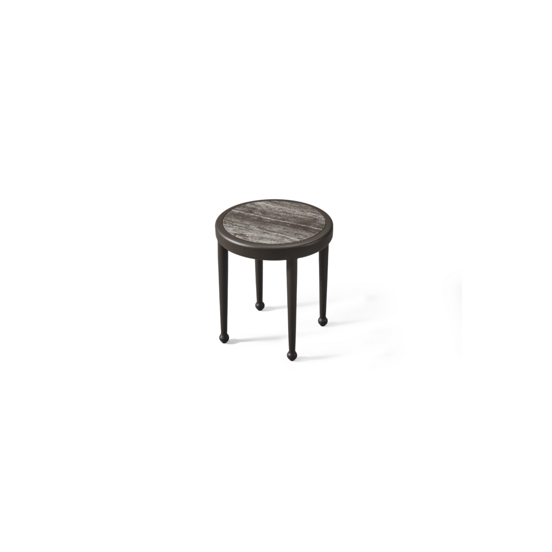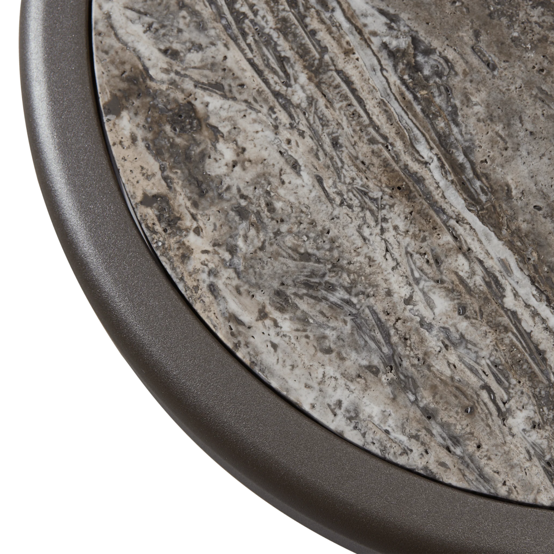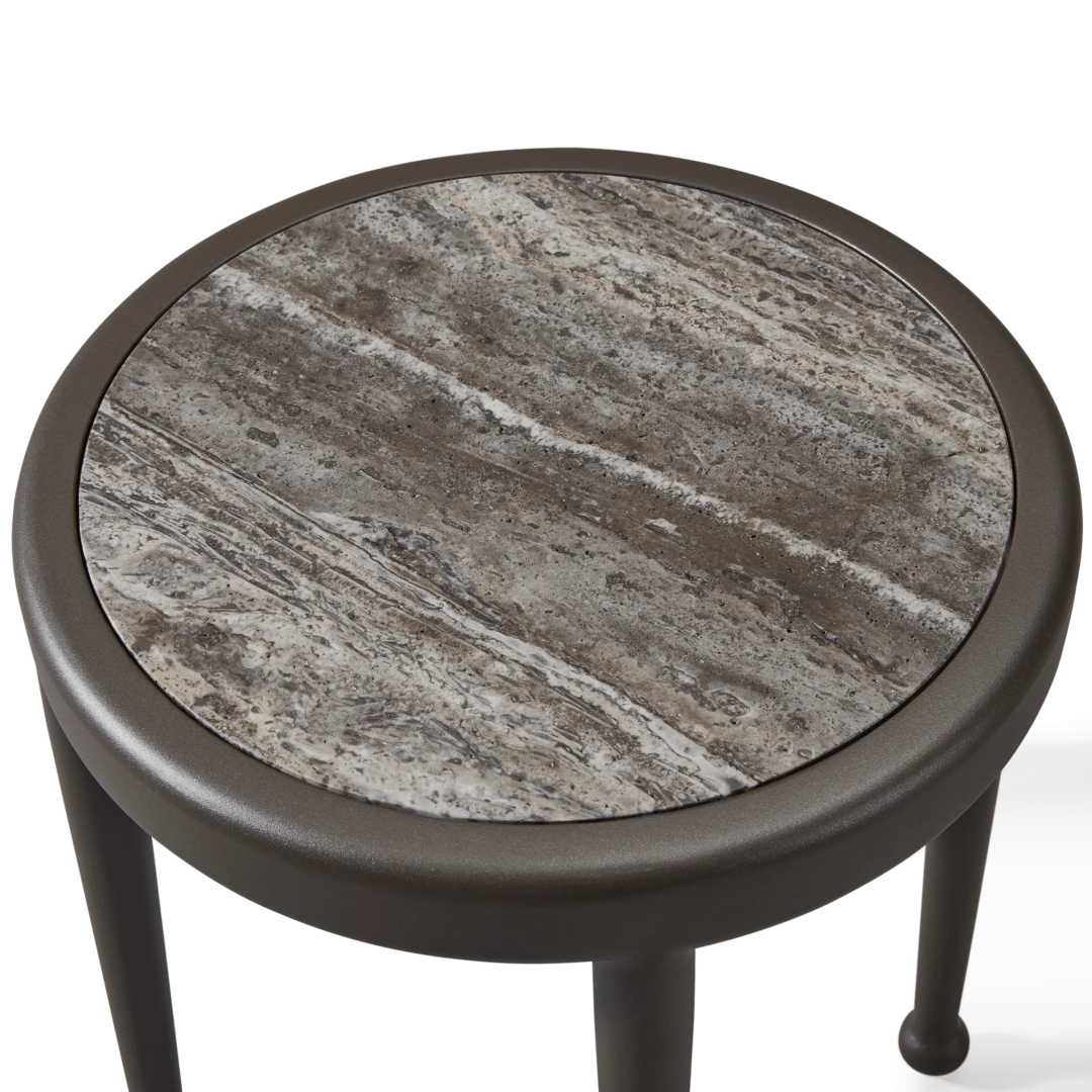 The Andre Round Side Table is inspired by classic wrought iron European furniture—featuring our signature powder coated Aluminium frame in a thinner style that creates an airy openness. An inset stone top showcases the elevated simplicity of the table for a more contemporary look. Petite in scale but grande in design, this outdoor side table captures the look and feel of iron in an elegant construction that you might discover sitting in the garden of a five-star hotel in the South of France.