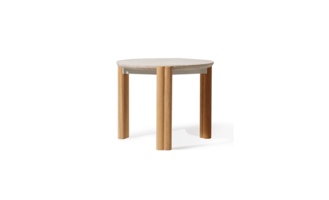 Influenced by modern Australian architecture and landscapes, our refined Cove collection features special details like double cylindrical legs and curved edges that create soft sculptural silhouettes. The mixed–material Cove Side Table completes your outdoor seating set — featuring a solid Indonesian teak frame in Natural with an architectural double leg detail suspending an organic travertine stone top in Natural. A classic round side table, this piece is built for outdoor living by the pool or in nature.