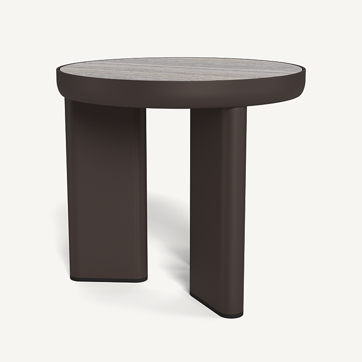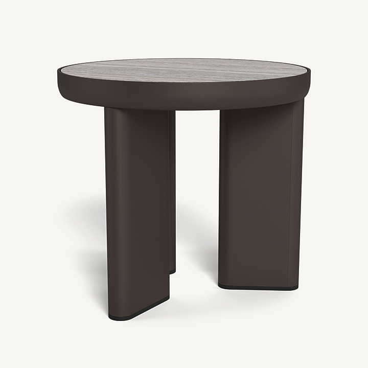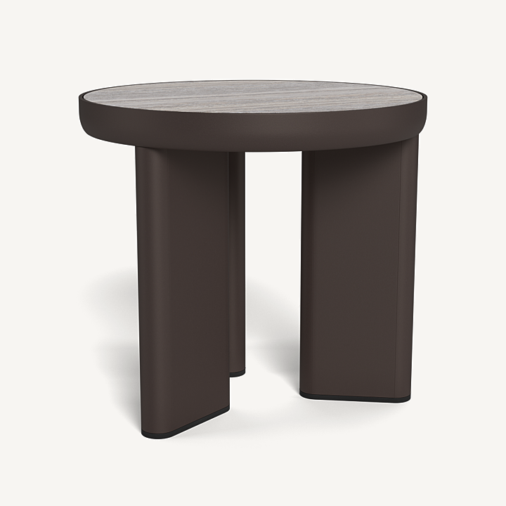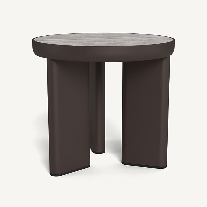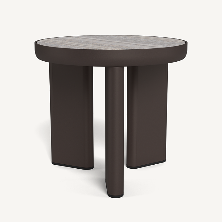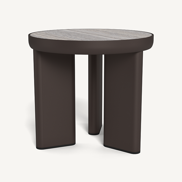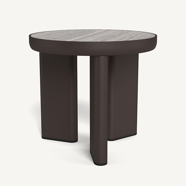 Moab Round Side Table (Aluminum Bronze / Travertine Dark Grey)