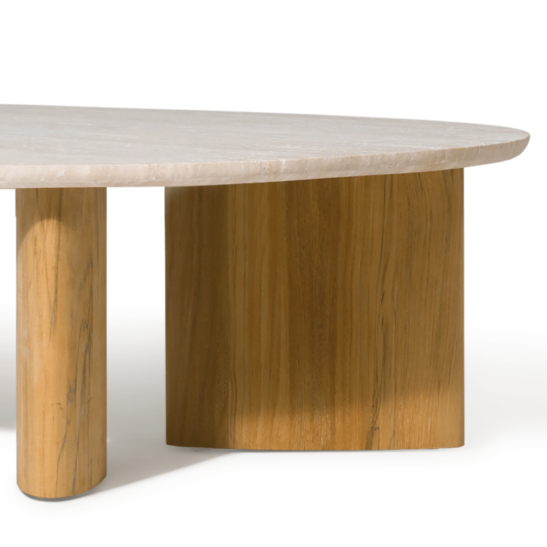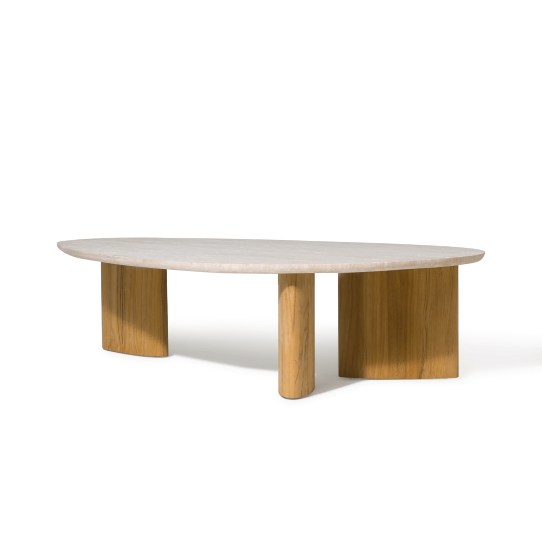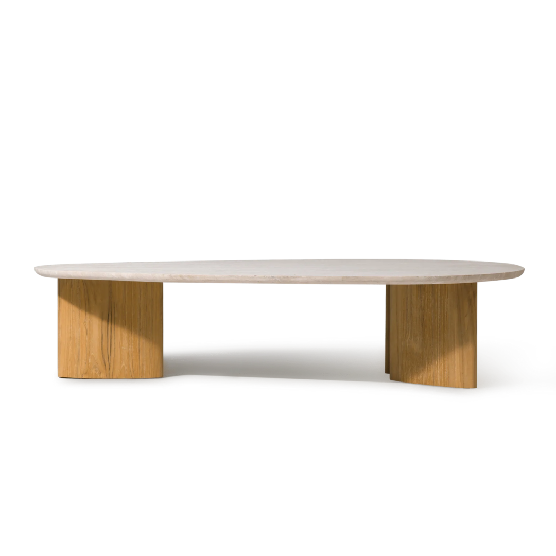 Design elements like oval–shaped legs elevate a geometrical silhouette, while deep seating and wide, flat arms create comfort for all–day lounging.