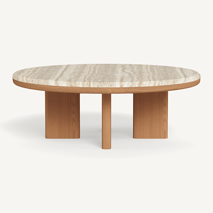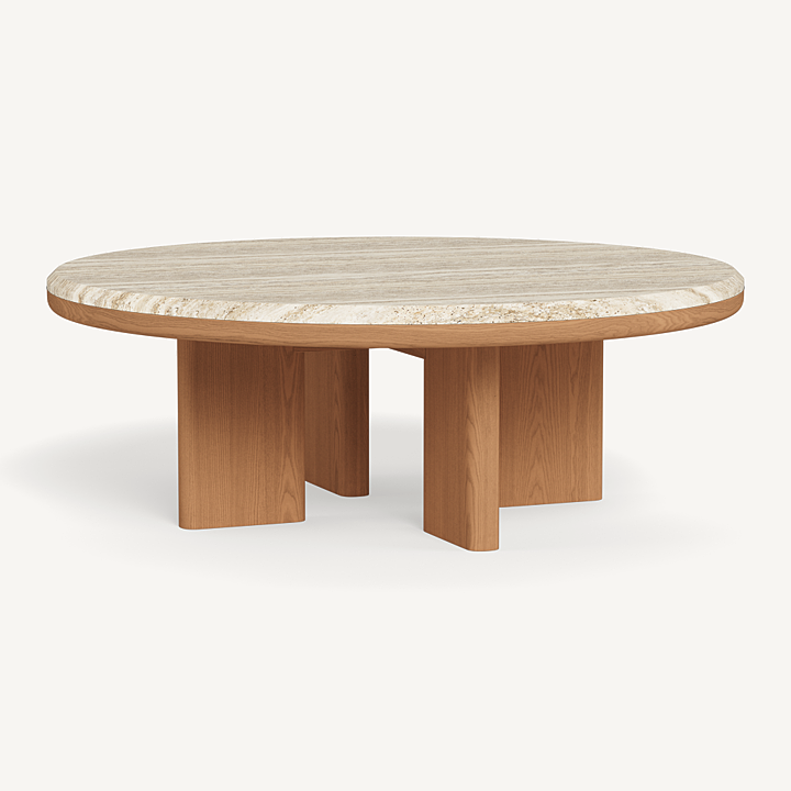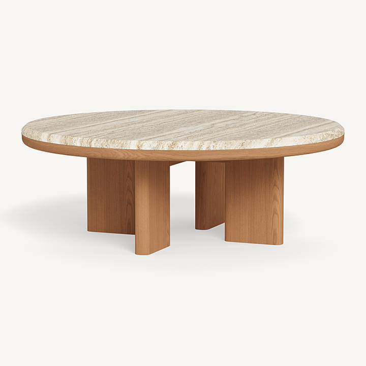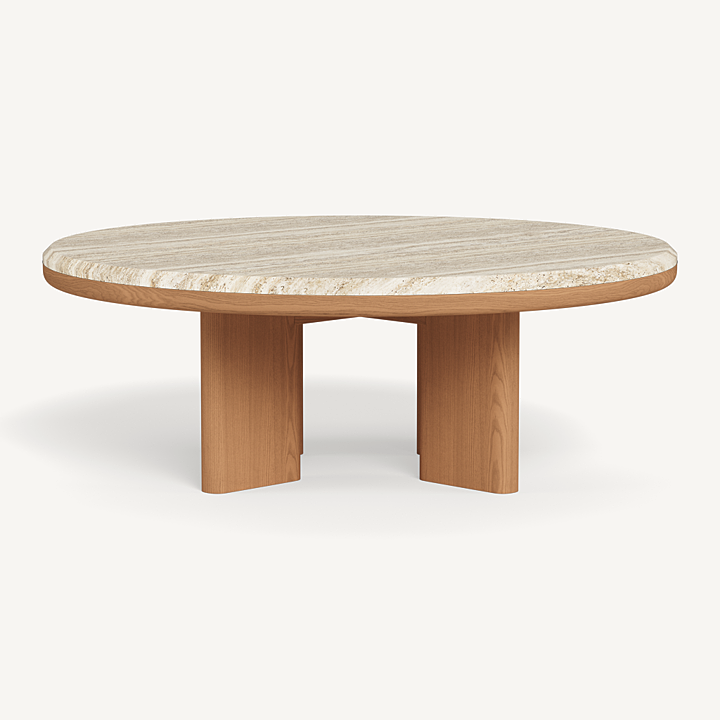 A nod to Sydney's iconic Palm Beach with its stately coastal pines. Rounded backs, vertical rope detailing and a harmonious mix of materials infuse classic silhouettes with modern elegance. Transitional in spirit, the Palm Beach Teak Round Coffee Table is a refreshing update to our signature classics—a Parsons-style table crafted in solid teak, angled legs support a travertine top and spotlight a simple, but very thoughtfully connected, design. With mixed materials creating a luxe and dimensional design, this outdoor coffee table is perfect for entertaining and complements a range of styles.