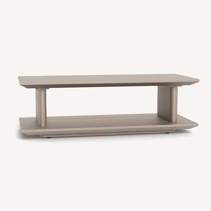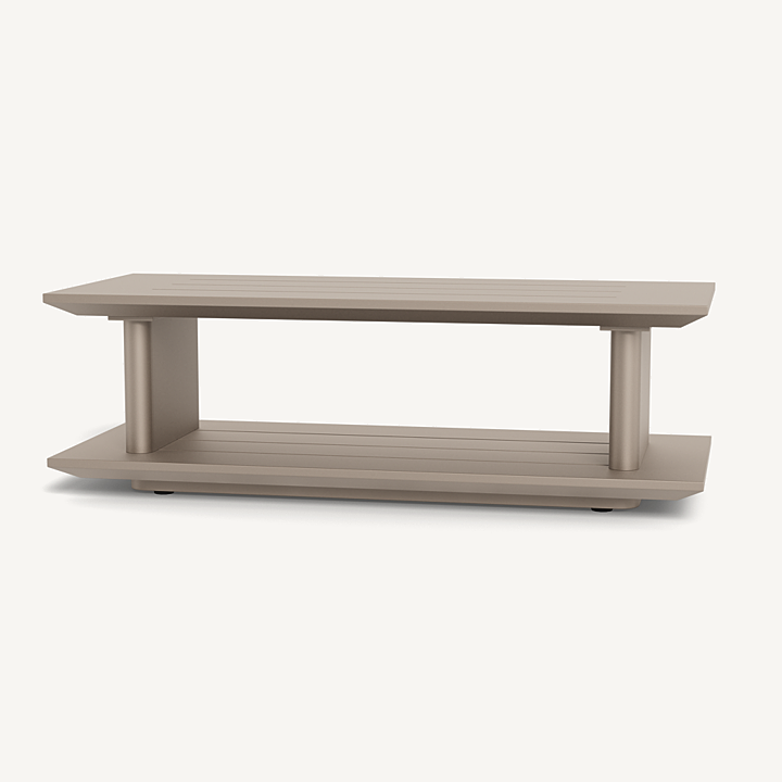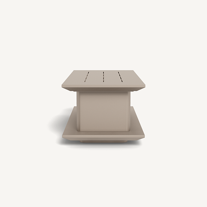 Building on our years of experience in outdoor design, the popular fully upholstered Santorini collection and coordinating tables offer versatility in modular seating and entertaining. Our Santorini Outdoor Rectangle Side Table (Slatted) was designed as the perfect seating complement — enjoy a generous surface in slatted extruded aluminum floating on a matching plinth base. This rectangular piece was designed to live alongaside the arm of any Santorini Outdoor sectional, Sofa or Chair — extending surface options for entertaining.