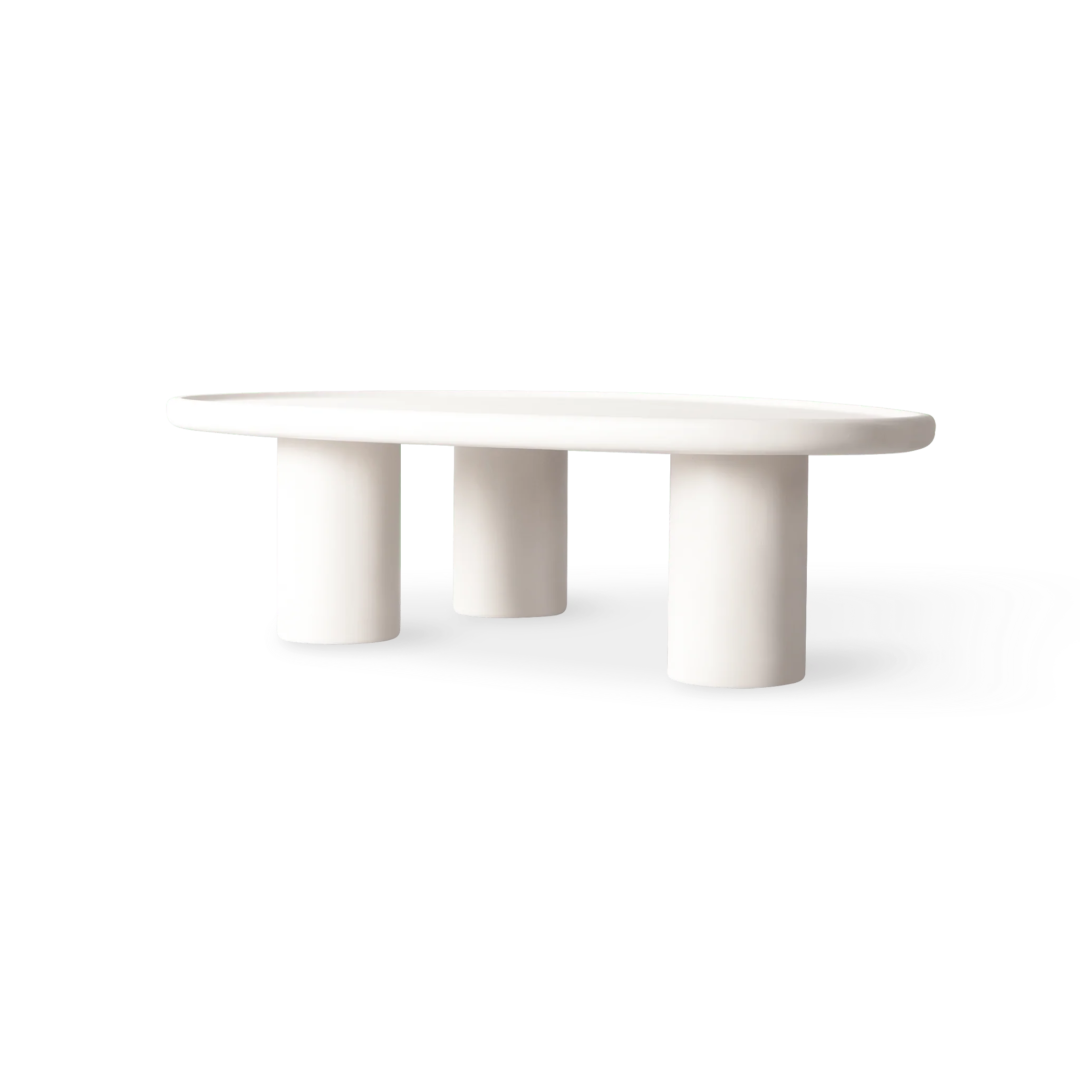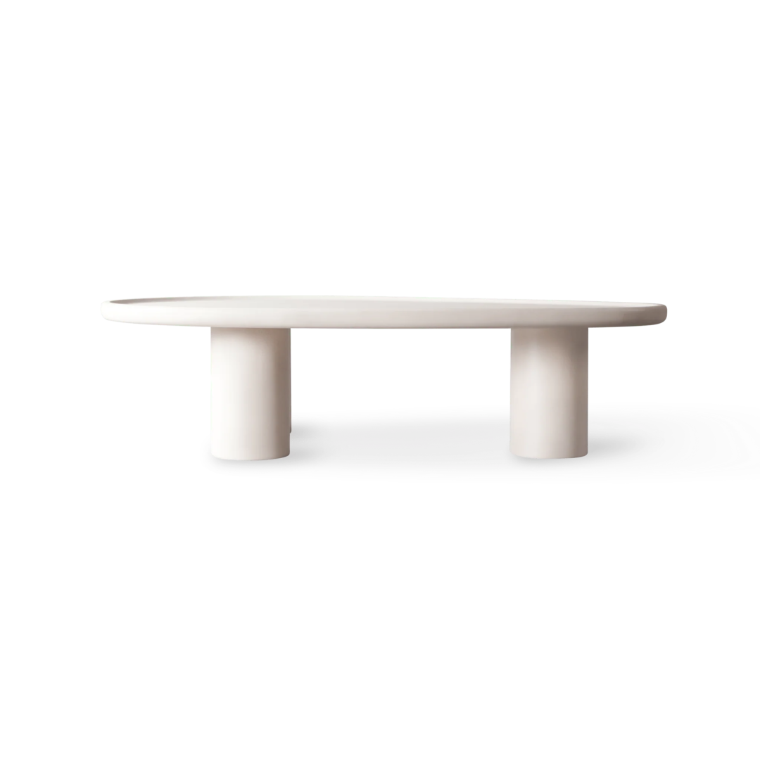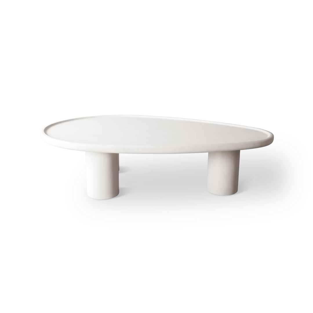 Crafted from an innovative concrete composite, these soft, sculptural nesting tables boast a chalky limestone finish that recalls the ancient white limestone cliffs that inspired their name. The Scala Almond Nesting Coffee Table showcases a new design in a brand-new material—poured into our custom molds, Composite Concrete - Salt assumes fluid and organic shapes while maintaining the strength suitable for the outdoors. Part of a trio of tables, this table is designed in a curved triangle shape with three legs and meant to be clustered with the collection's other pieces to curate overlapping shapes alongside your seating configuration. A harmony of soft shapes and edges, this outdoor coffee table elevates your outdoor entertaining with a unique, design-forward touch.