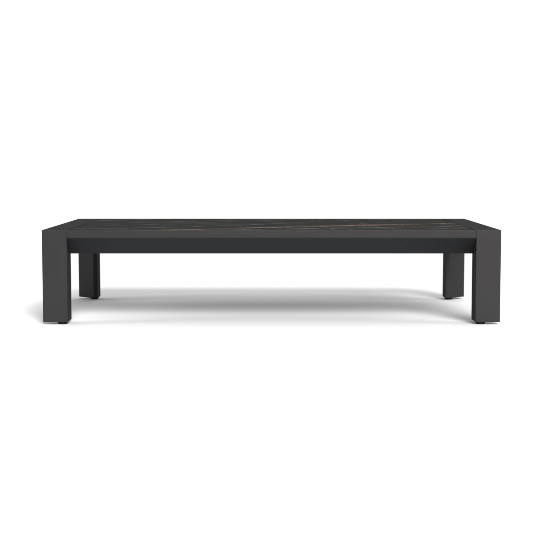 Our Vaucluse collection explores simple geometries with angular details in a contemporary study of triangles. Surprising and subtle, the Vaucluse Coffee Table was designed as the perfect anchor for your outdoor seating set — featuring a powder coated extruded aluminum base supporting a beautifully textured Italian ceramic top that's its own showpiece. Outwardly square geometries actually angle inward in triangular form, creating a dynamic play on shapes that defines the design. This streamlined piece is equally versatile, bringing a sense of balance to any space.
