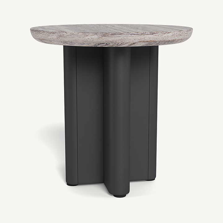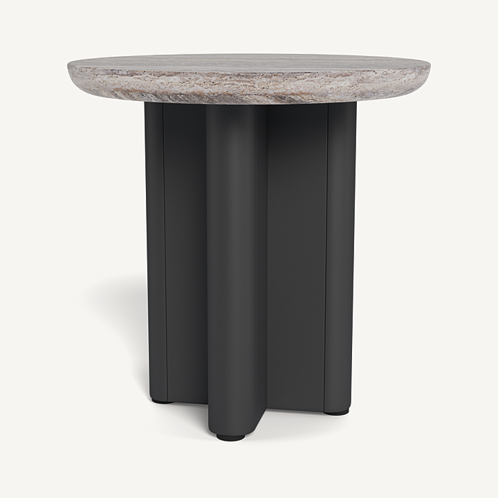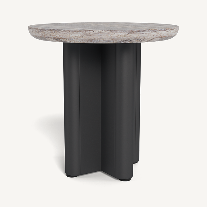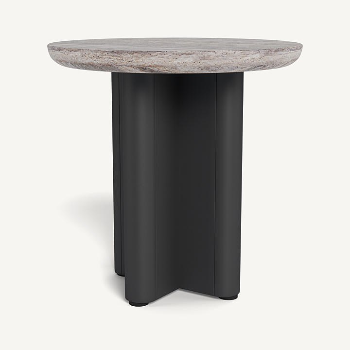 Victoria Round Side Table (Aluminum Asteroid / Travertine Dark Grey)
