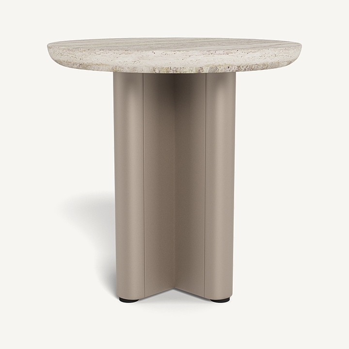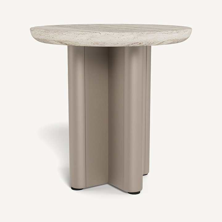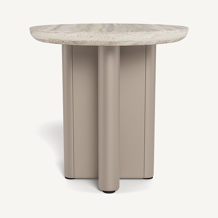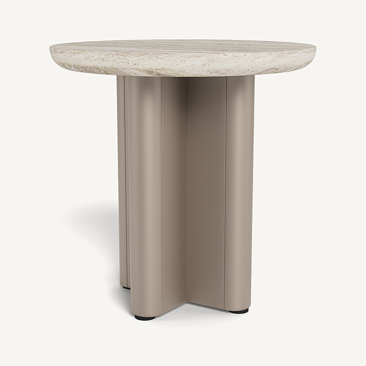 Victoria Round Side Table (Aluminum Taupe / Travertine Silver)