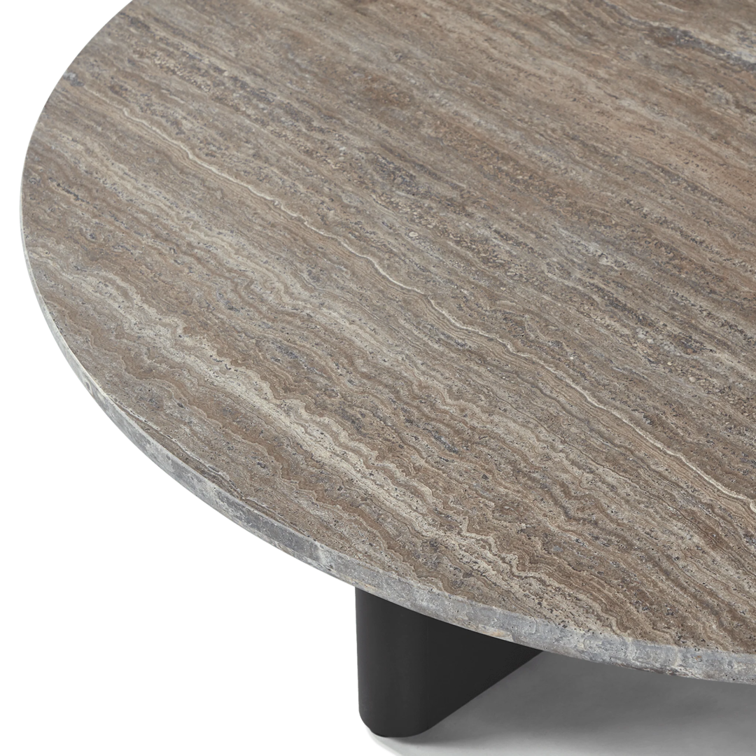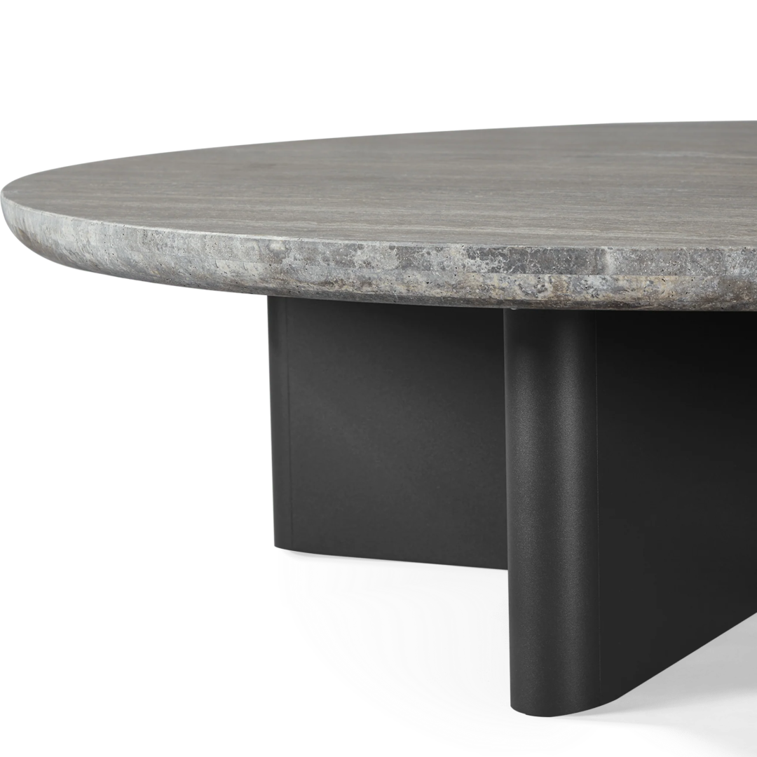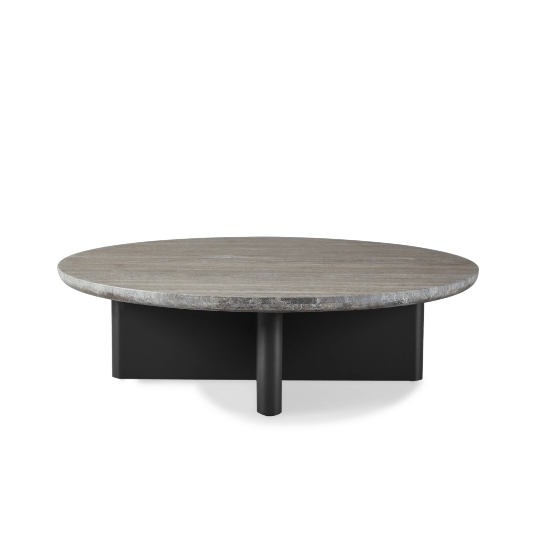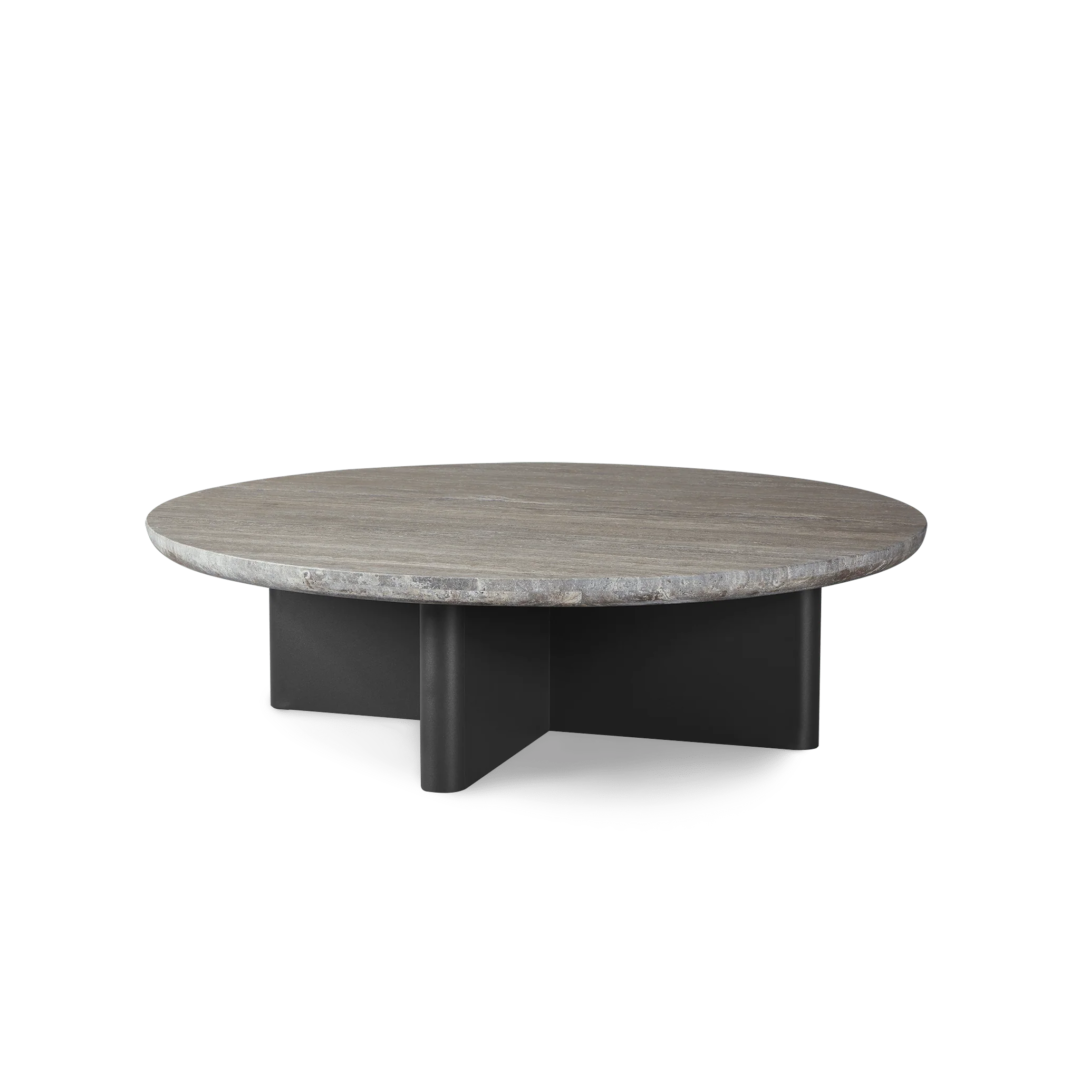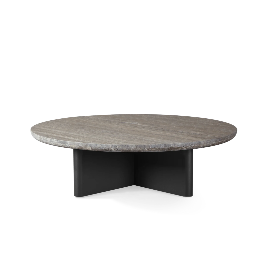 Our Victoria collection balances sculptural curves and right angles for true simplicity of proportion. The Victoria Round Stone Coffee Table was designed as the perfect anchor for your seating set — featuring a stunning X–shaped base in powder coated extruded aluminum supporting a round travertine stone top. Special details like curved edges and a half–bull nose add extra refinement. A classic round shape made to invite conversation, this contemporary outdoor coffee table brings harmony to a variety of spaces.