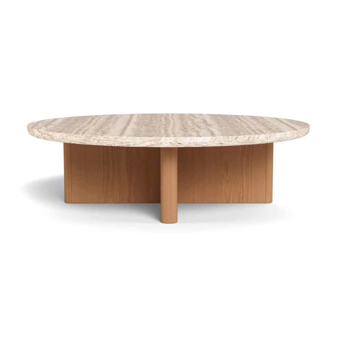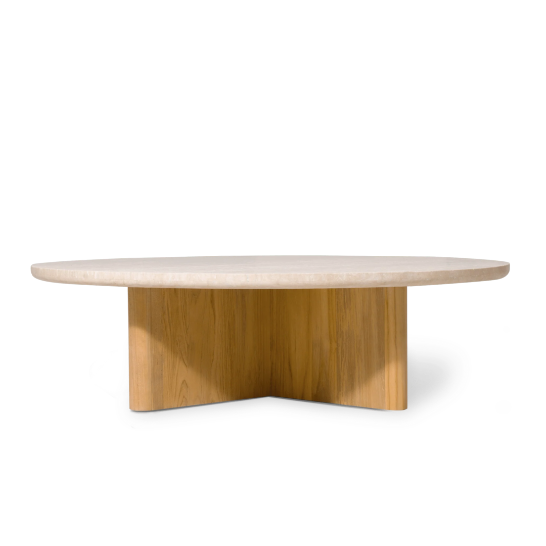 Our Victoria collection balances sculptural curves and right angles for true simplicity of proportion. The Victoria Teak Round Stone Coffee Table was designed as the perfect anchor for your seating set — featuring a solid Indonesian teak base in Natural supporting a round travertine stone top. Special details like curved edges and a half–bull nose add extra refinement. A classic round shape made to invite conversation, this contemporary outdoor coffee table brings harmony to a variety of spaces.