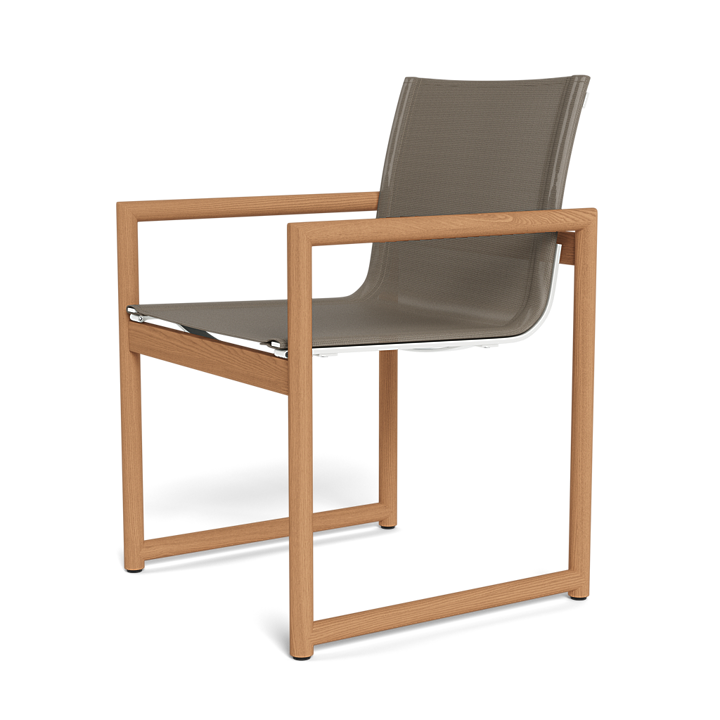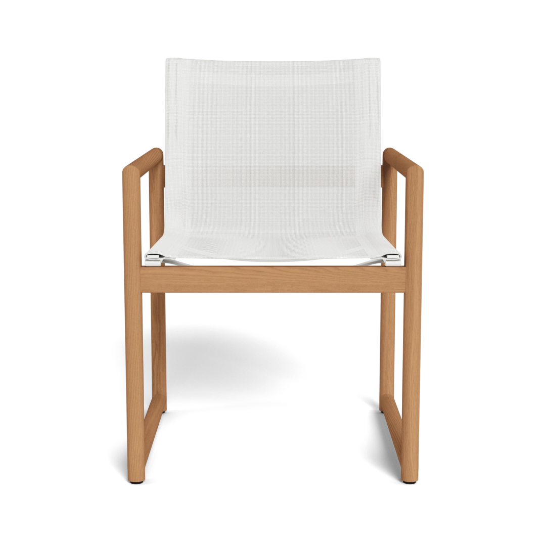 A signature Harbour collection, our Breeze XL Teak line features cylindrical solid teak craftsmanship with a seaside feel. The Breeze XL Teak Dining Chair is a perfect complement to our table — with an all–weather Batyline sling seat and back for support and easy cleaning stretched across an aluminum frame, no cushion required. This laidback piece is made for a variety of table sizes and grander spaces.