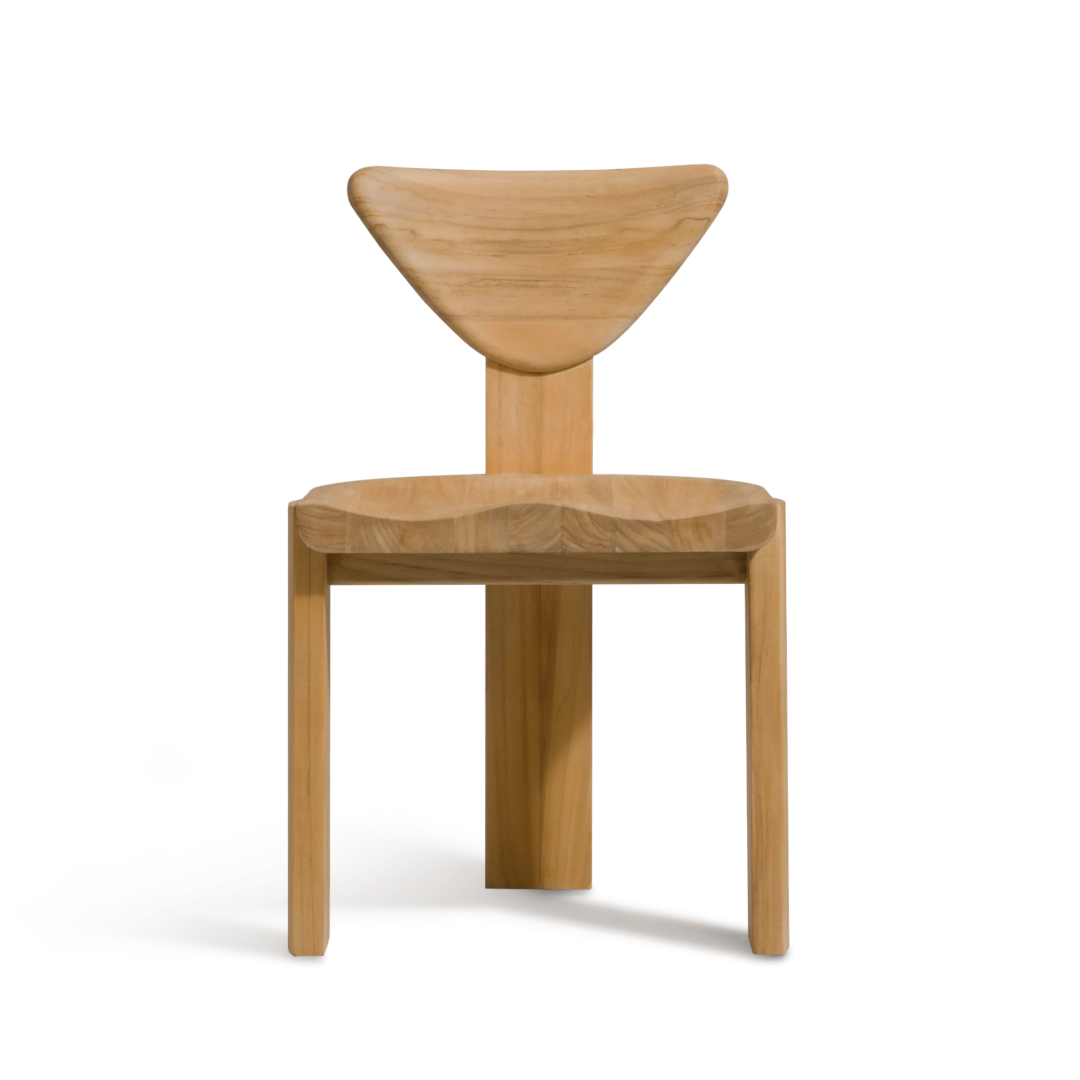 A playful new take on Scandinavian midcentury styles. A simple tripod silhouette supports contoured seats in Indonesian teak for a versatile contemporary upgrade to outdoor entertaining.