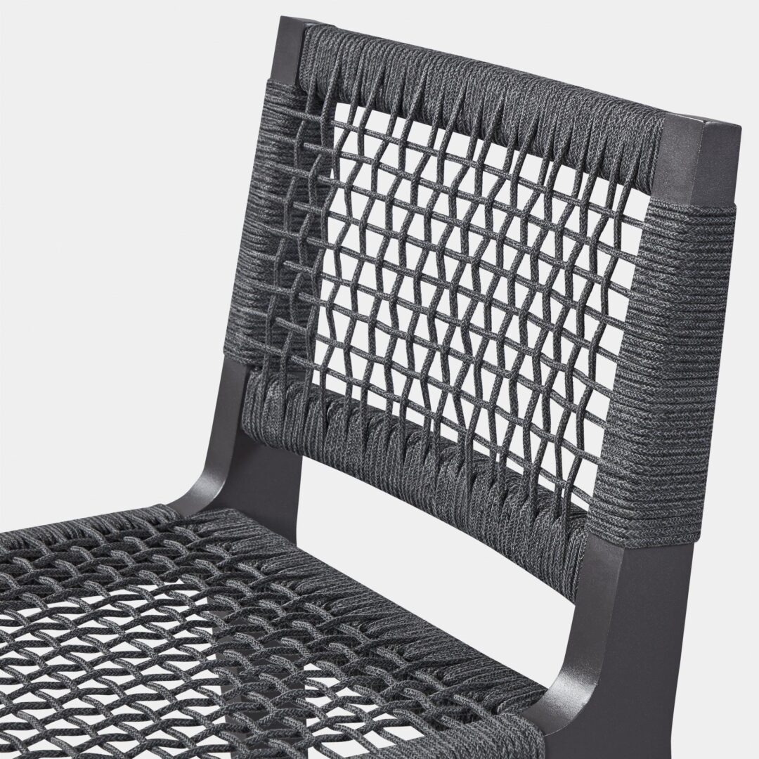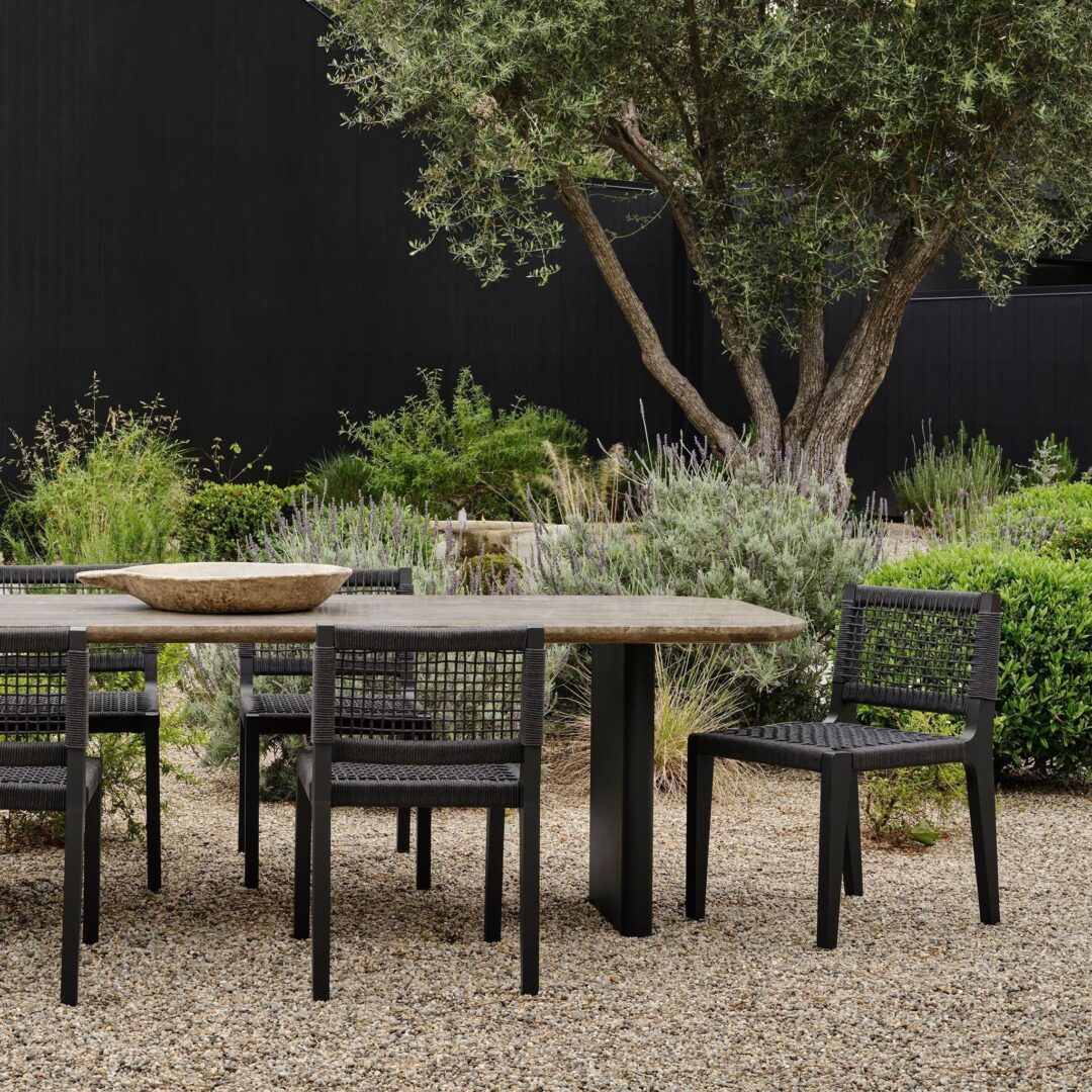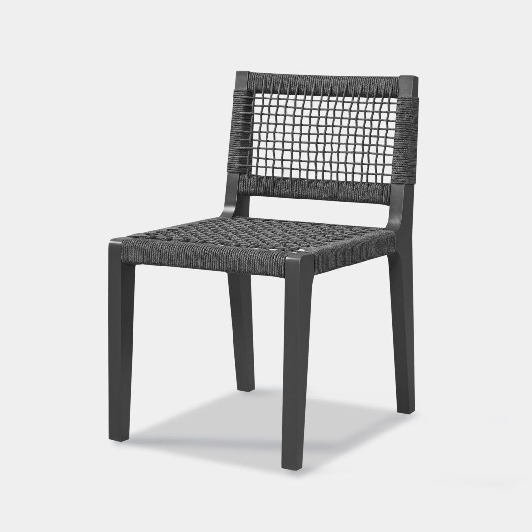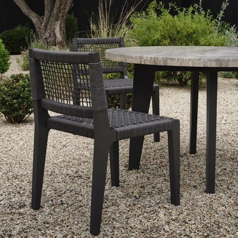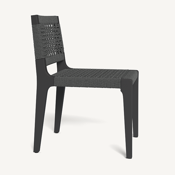 A collaboration with decorated interior designer Martyn Lawrence Bullard, our MLB collection, now in aluminum, balances modern proportions with a striking juxtaposition of outdoor materials. The MLB Armless Dining Chair is a standout — subtle curves add interest and elevates a versatile basic dining chair. No cushion required, our all weather rope adds a low maintenance and comfortable suspension to the seat and back. A truly versatile statement piece, layer this design into a multitude of aesthetics or leave it as a stand alone to really let it shine.