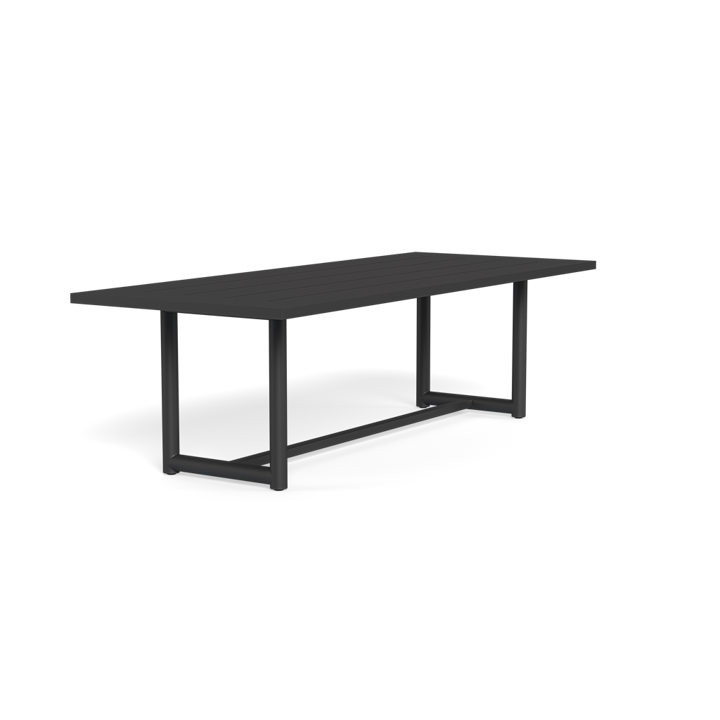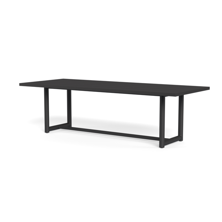 A signature Harbour collection, our Breeze XL line mixes tubular aluminum construction with solid teak accents for an alluring simplicity. The all–aluminum Breeze XL Dining Table 2600 was designed as the perfect outdoor table for up to ten — enjoy a cylindrical powder coated extruded aluminum base with a matching slatted aluminum top that's streamlined and functional. The larger of our two Dining Tables, this elegant piece sets the tone for grander spaces.