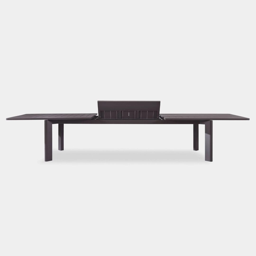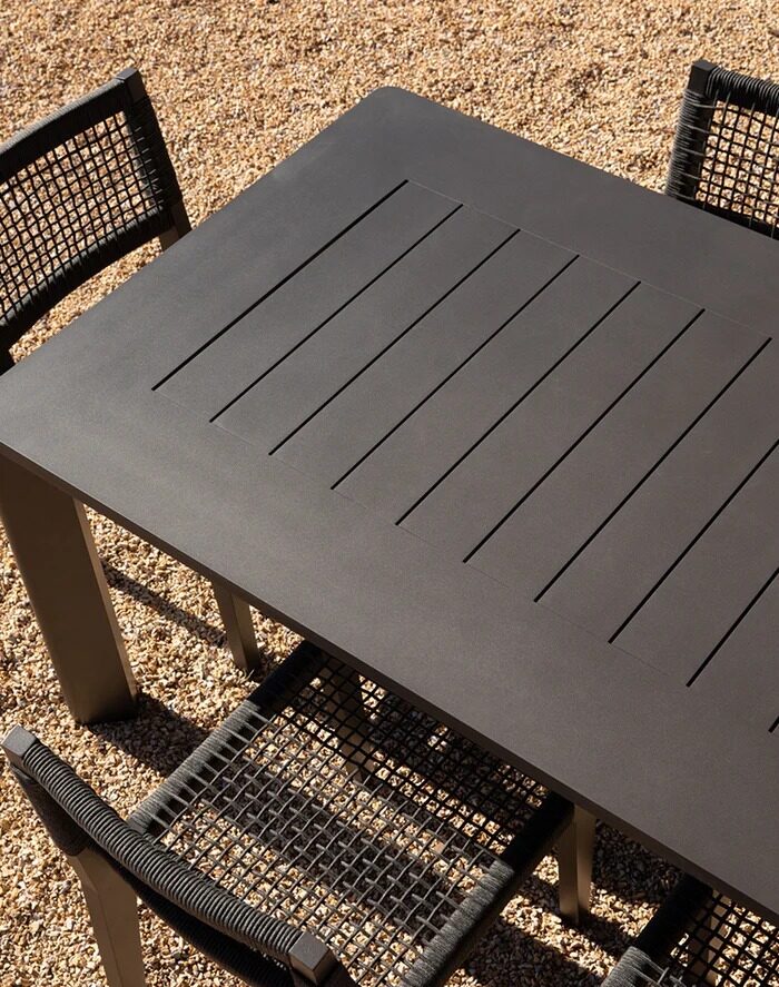 Byron Aluminium collection blends sophisticated styling with an architectural play of angles to create exceptional design. Our star dining table, the Byron Aluminum Extendable Dining Table is designed as the perfect outdoor table for up to twelve — featuring a handcrafted powder coated extruded aluminum frame with curved corners and legs and built–in flexibility thanks to a folding extension leaf. Built to last, this highly usable piece instantly enhances any space with its subtle elegance.