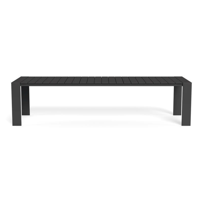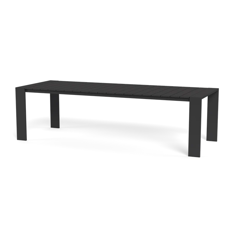 Our Hayman collection is a statement in simplicity with clean angles and modern styling. Defined by wide legs, our Hayman Dining Table was designed as the perfect outdoor table for up to twelve — enjoy our largest rectangular surface in slatted extruded aluminum available in Asteroid or White that's streamlined yet functional. An indoor aesthetic meets outdoor performance with this modern dining table made for a variety of spaces. Add our Hayman dining chairs to complete your outdoor dining set.