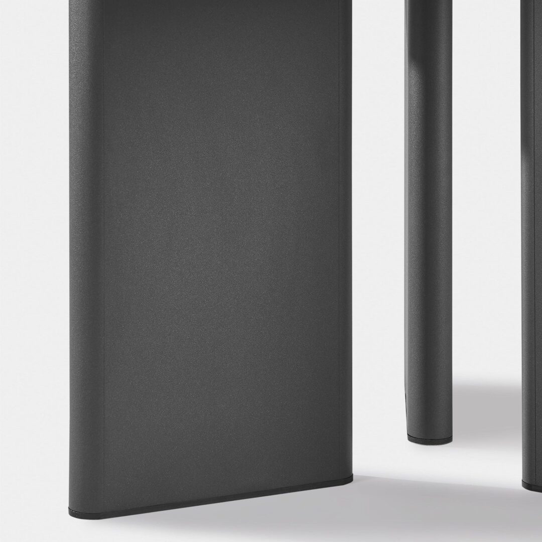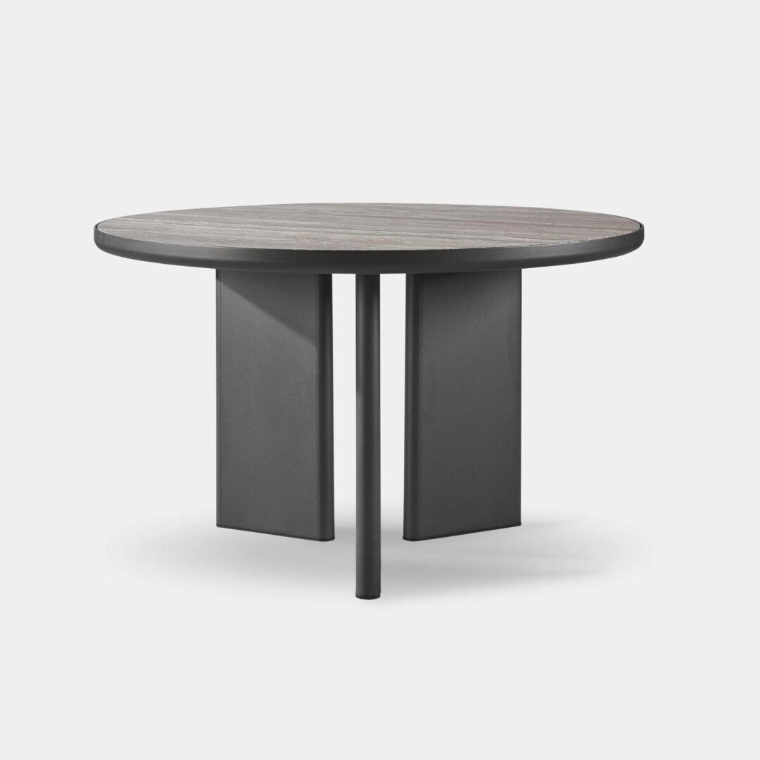 Our Moab collection uses the finest materials to create the next generation of comfort — it’s the definition of bringing the indoors out. The Moab 48" Round Dining Table was designed as the perfect outdoor table — featuring a powder coated extruded aluminum frame with a travertine stone top set into a matching aluminum border. Tubular construction and an angled three–leg design introduce a dynamic element to this classic collection. This striking piece brings a modern approach to the table and a contemporary aesthetic to any space.