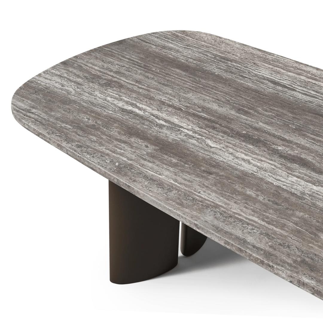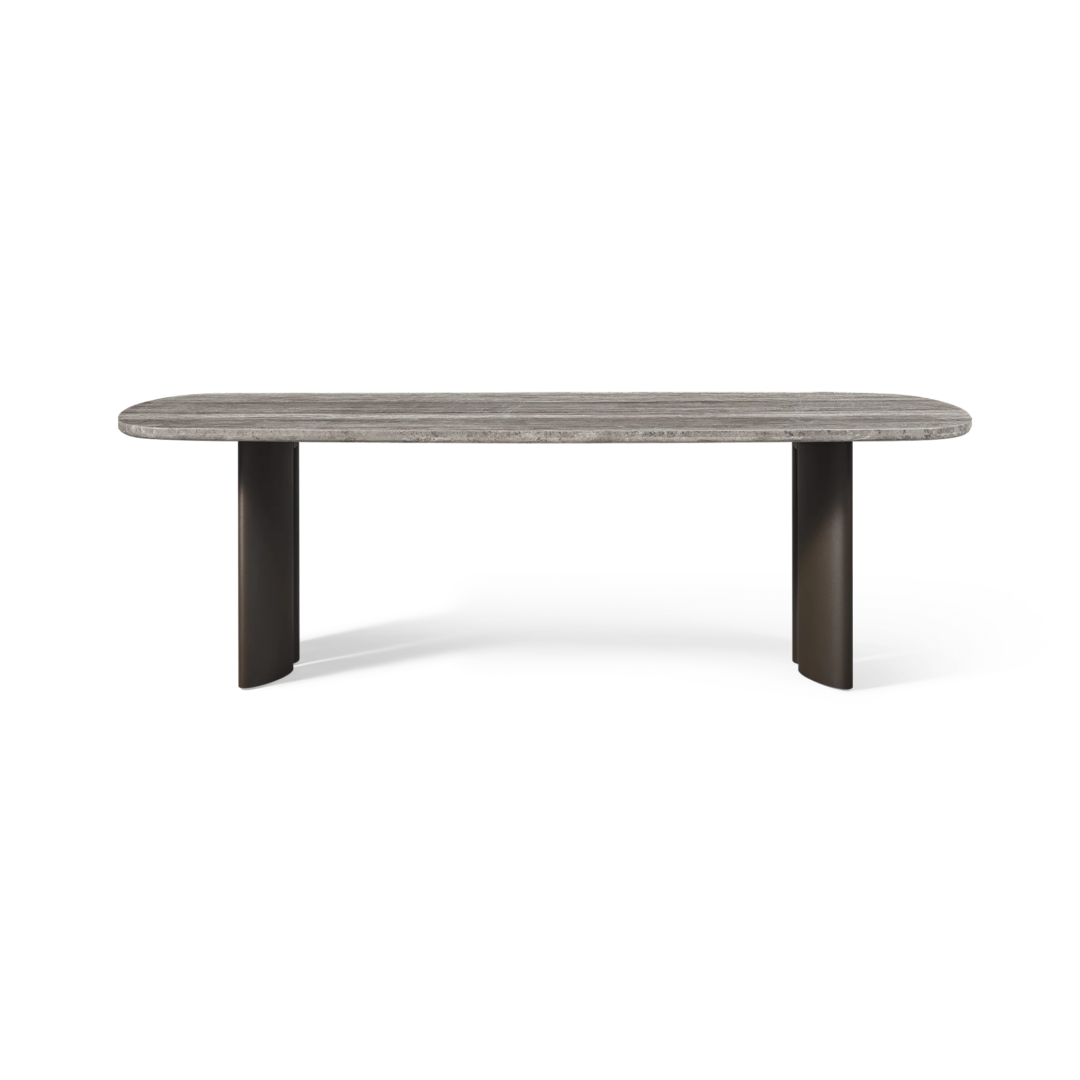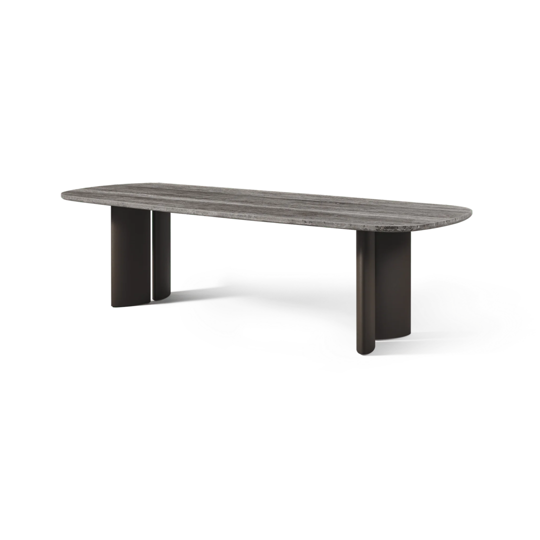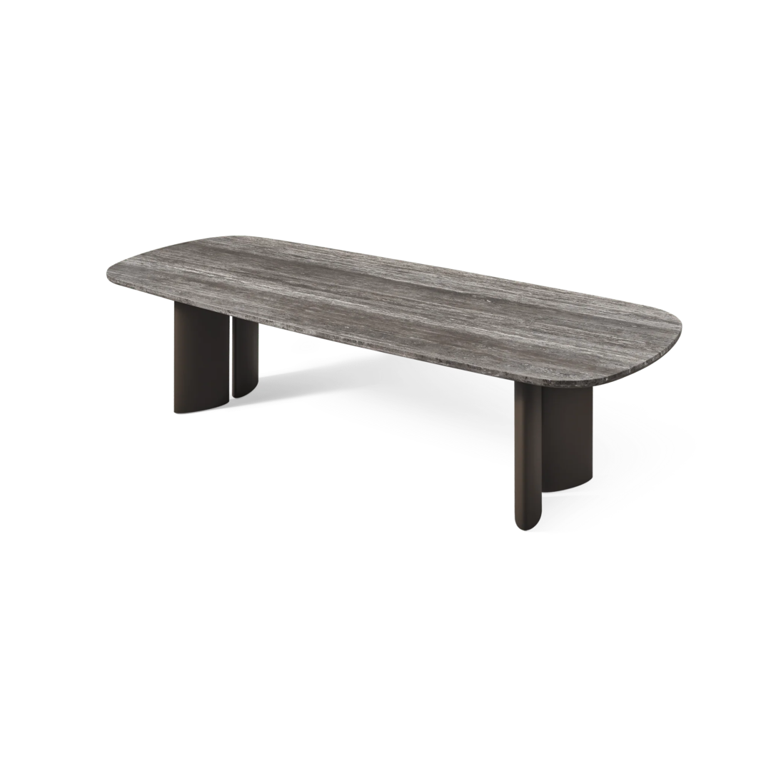 Design elements like oval–shaped legs elevate a geometrical silhouette, while deep seating and wide, flat arms create comfort for all–day lounging.