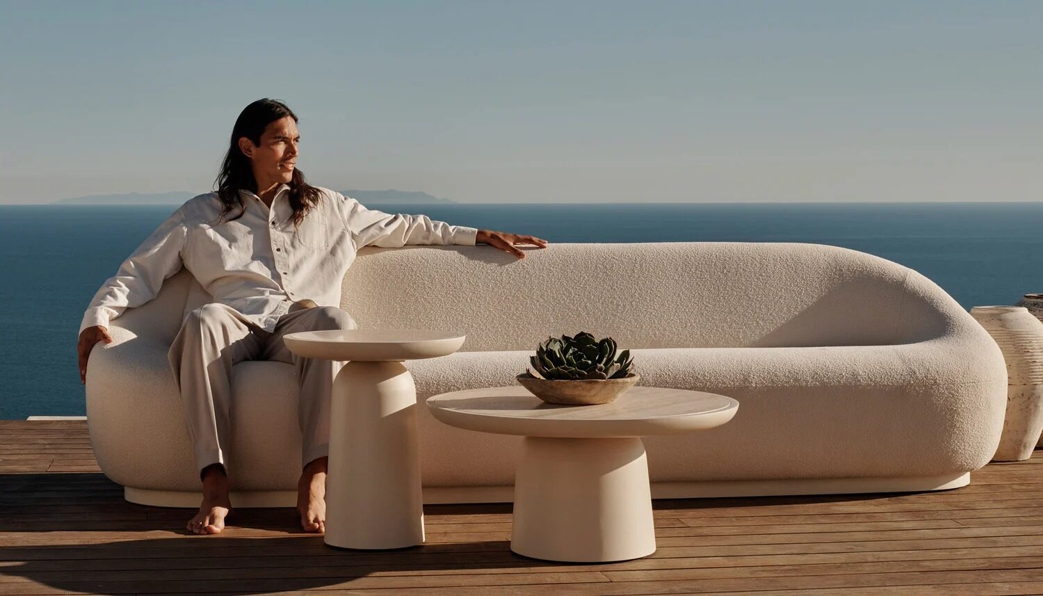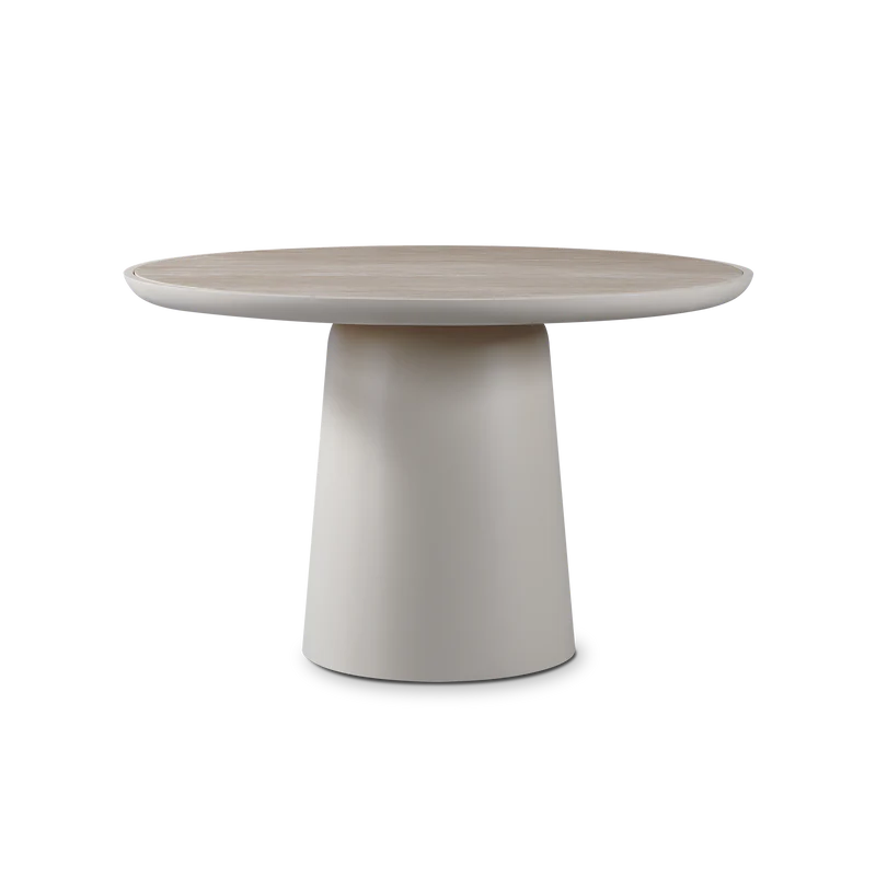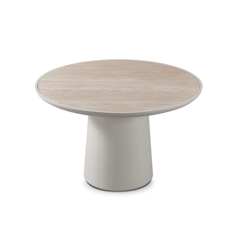Sculptural simplicity echoes midcentury design in our Nova collection, where sleek and sophisticated lines provide an understated foundation for the contrasting textures of aluminum and travertine. The mixed–material Nova Round Dining Table 60" anchors your outdoor dining experience — featuring a powder coated aluminum base in Aluminum Bone with an inset travertine top in Natural. At a very practial 48" in diameter, this table is versatile enough for small–to–medium spaces and would also work as a cafe–style table for up to four. Elegant in its restraint, this piece adds a refined touch to your space. Pair it with any dining chair to complete your outdoor dining set.