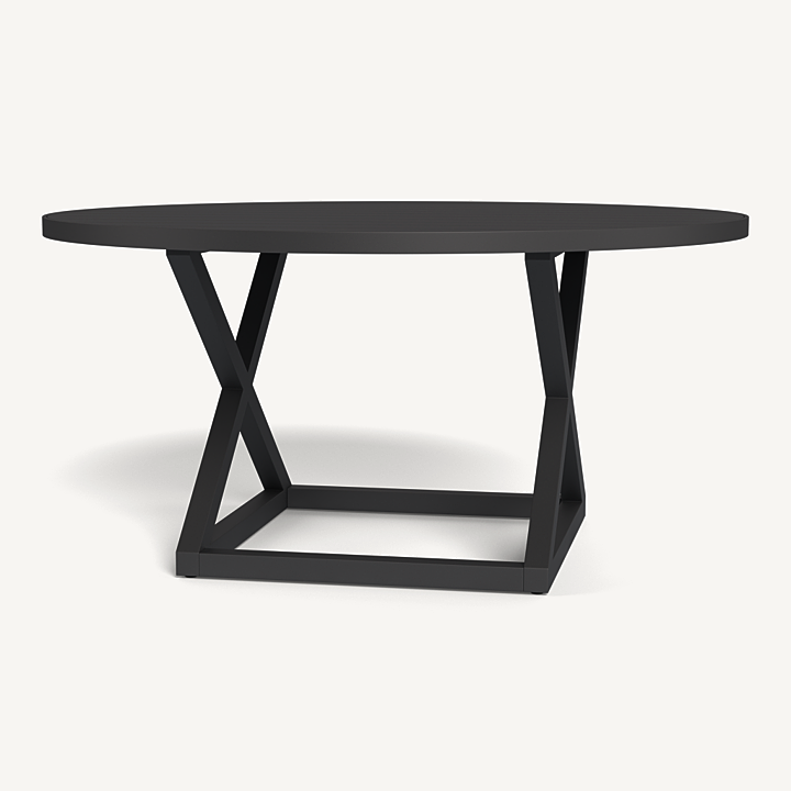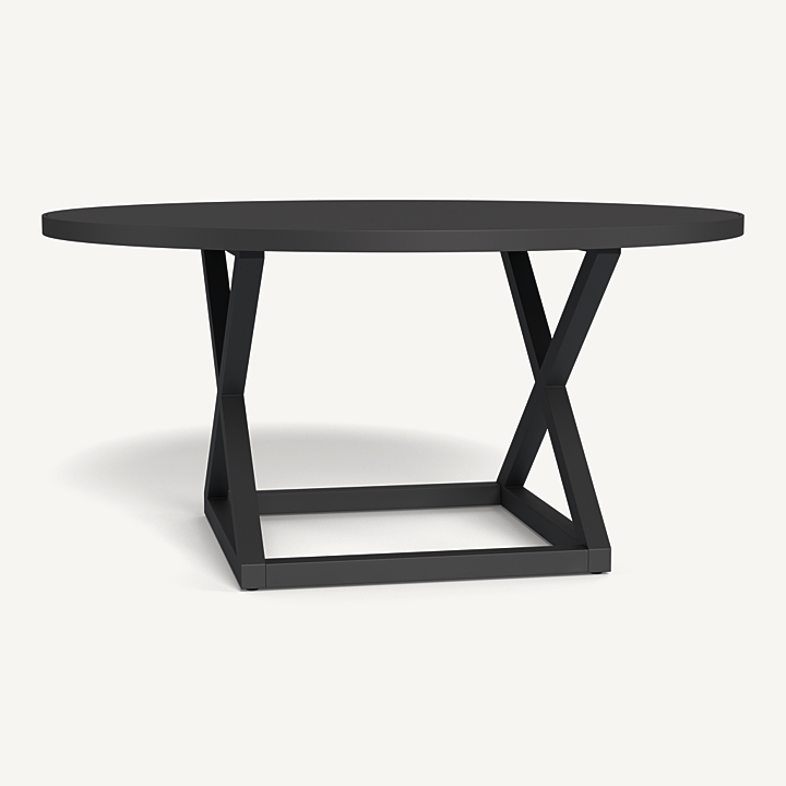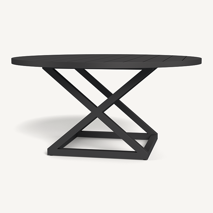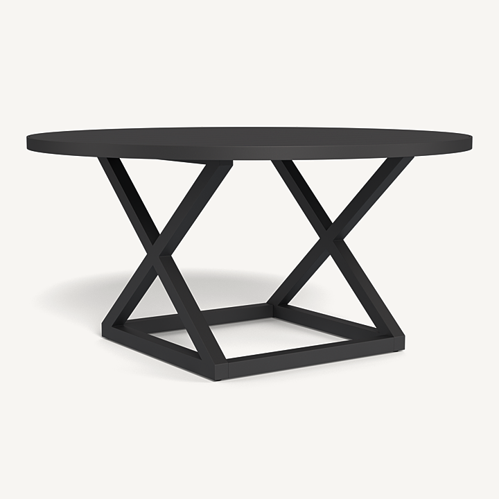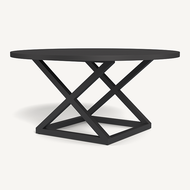 Our Pacific Aluminum collection features clean lines with a California rustic essence. The Pacific Aluminum Round Dining Table 1500 is the perfect gathering place — handcrafted in powder coated extruded aluminum with a criss–cross base that echoes the collection’s signature director’s chairs with center slats adding maximum functionality. This piece effortlessly fits in any space.