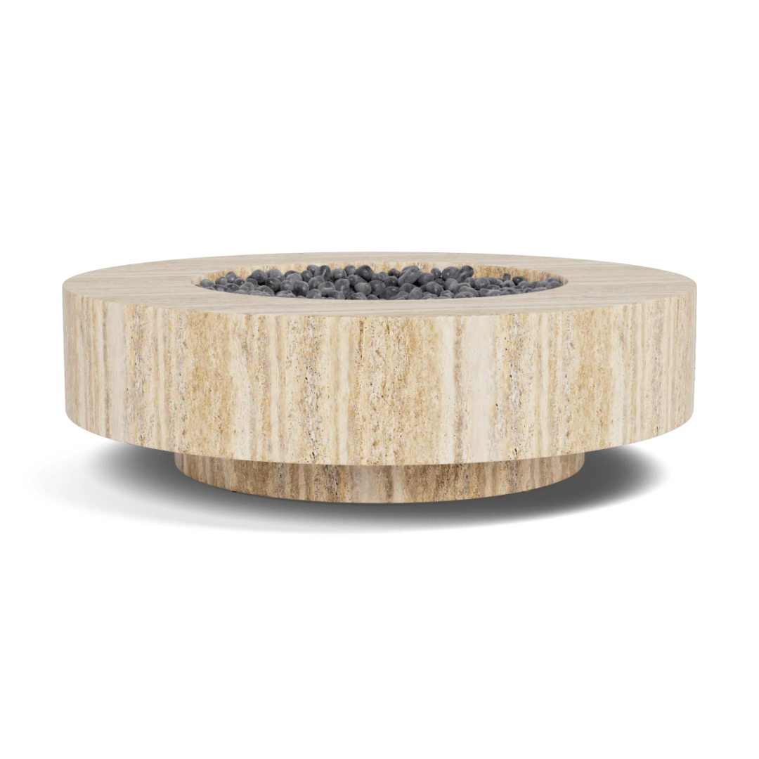 Featuring natural travertine as the grounding element of the design — and named after the Stonemasons who are masters of their craft — our collection of fire tables infuse energy, warmth and light to any outdoor space. The Mason Round Burner Fire Table is a study in simplicity and contrast, featuring natural travertine engineered into a streamlined plinth table with elegant rounded edges that suspends our gas burner. Functional with endless ambience, this handcrafted piece makes the outdoors truly great.