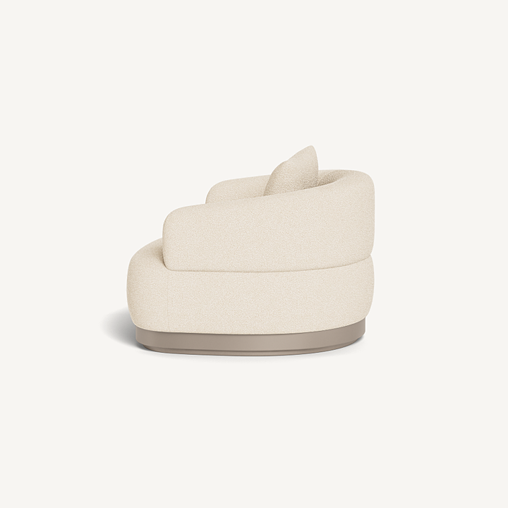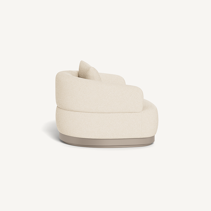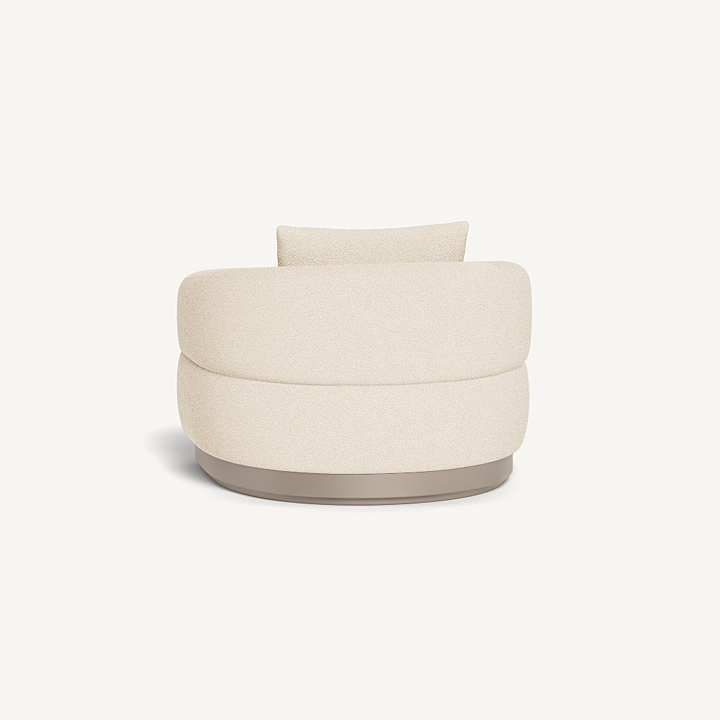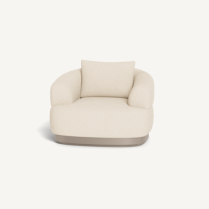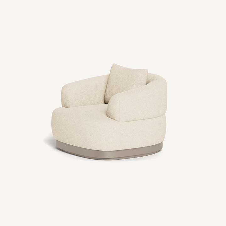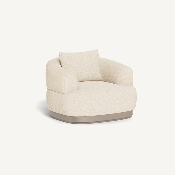 Our Amalfi collection brings Italian upholstery to the outdoors. A new addition to the collection, the Amalfi Swivel Lounge Chair is unmatched luxury — enjoy sink–in comfort in premium Italian fabric in a range of neutral tones on an extruded aluminum plinth base in Asteroid or Taupe that swivels with use, entirely and surprisingly made from 100% outdoor materials. A generously scaled outdoor chair that echoes the essence of Amalfi's signature shapes, this piece further blurs the lines between indoor and outdoor living and instantly elevates any space. Also available in a static design.