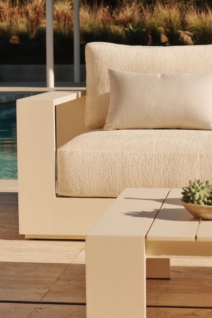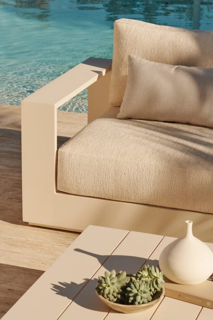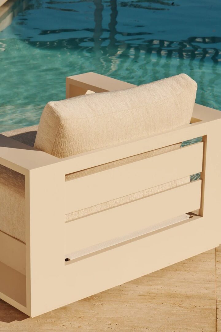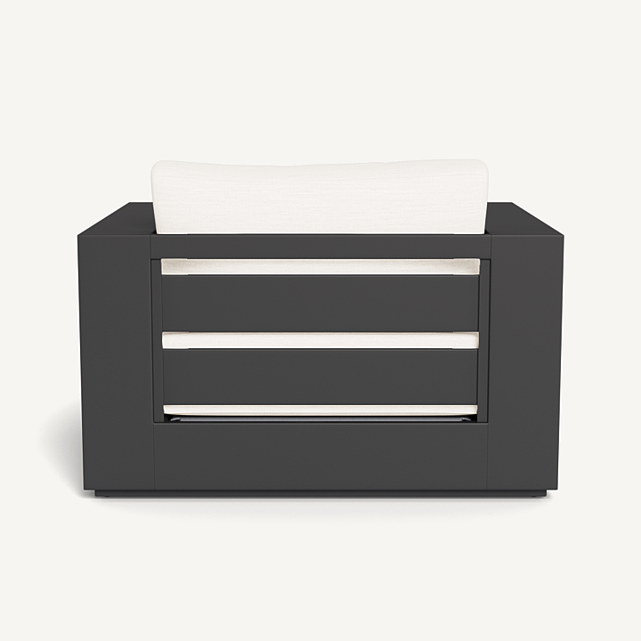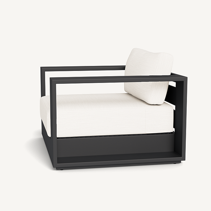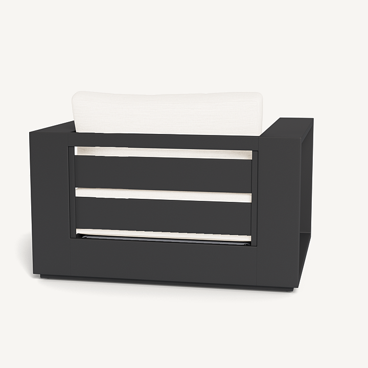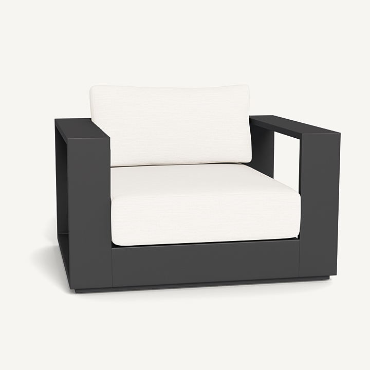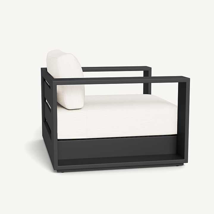 Our Hayman collection is a statement in simplicity with clean angles and modern styling. Defined by its wide arms, our low–profile Hayman Lounge Chair was designed to be experienced — sink into ultimate relaxation with a cushion for deep seating available in a range of neutral tones supported by a Batyline sling suspension in White or Silver for added comfort, all crafted in a powder coated extruded aluminum frame available in White or Asteroid. Indoor comfort meets outdoor performance with this modern lounge chair made for a variety of patio and pool spaces. Pair it with an Ottoman to really kick back and unwind.