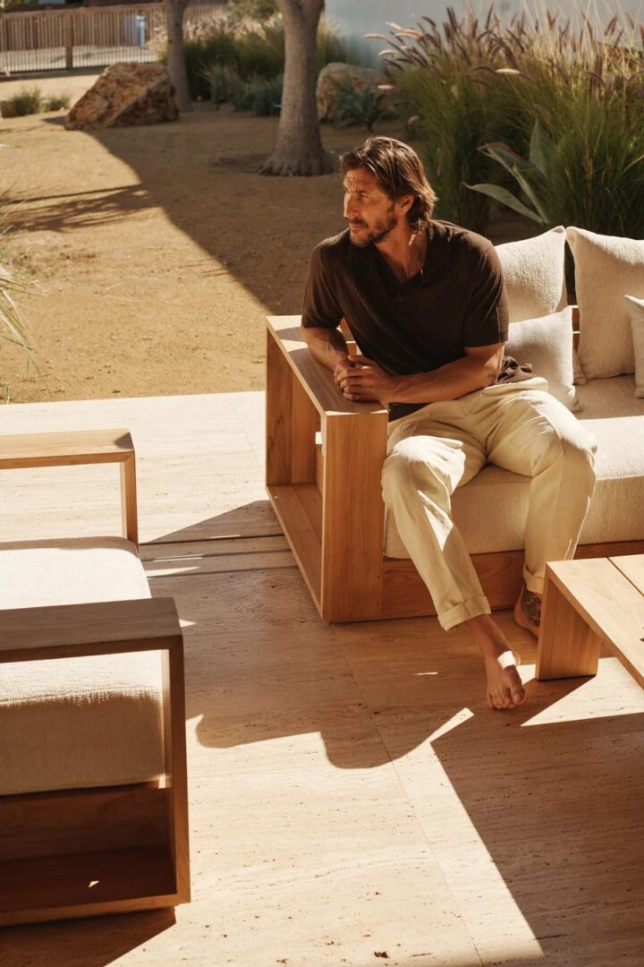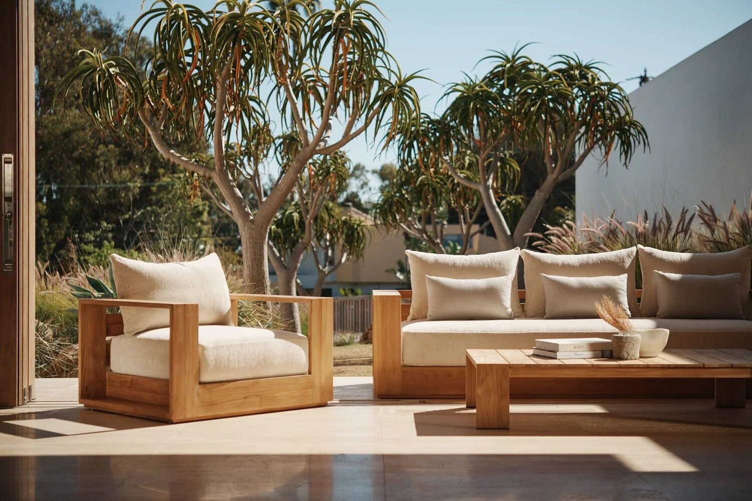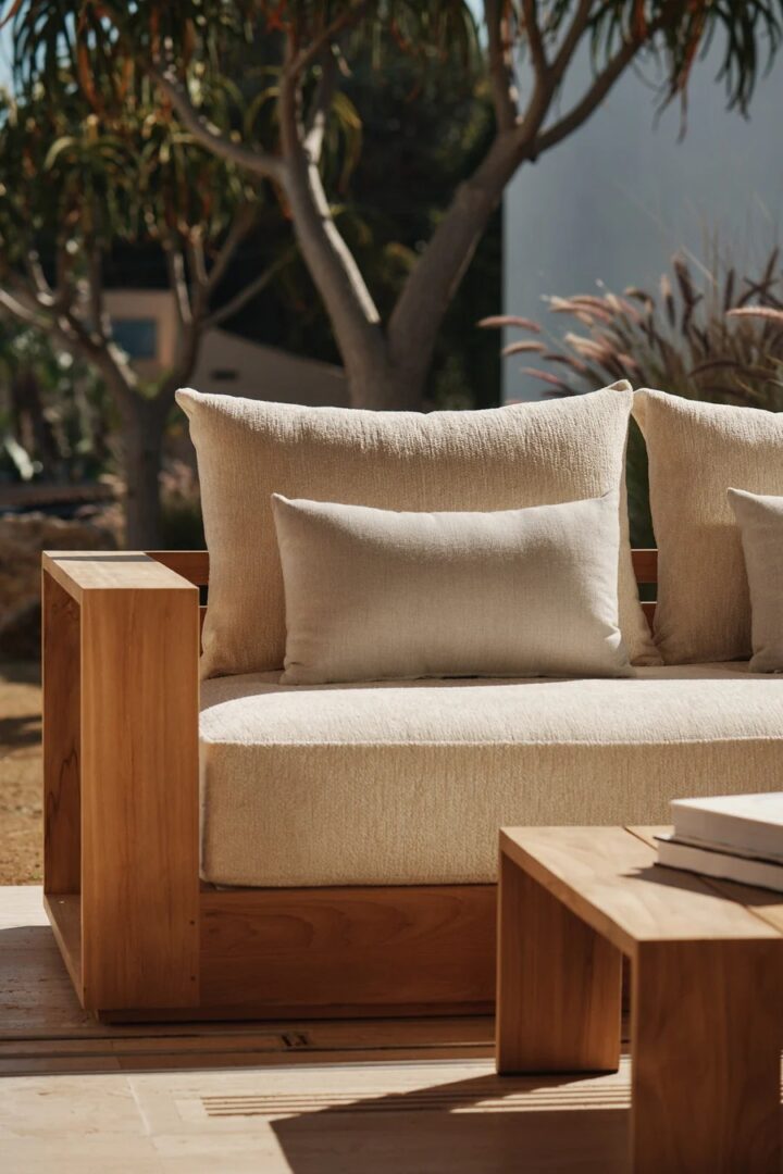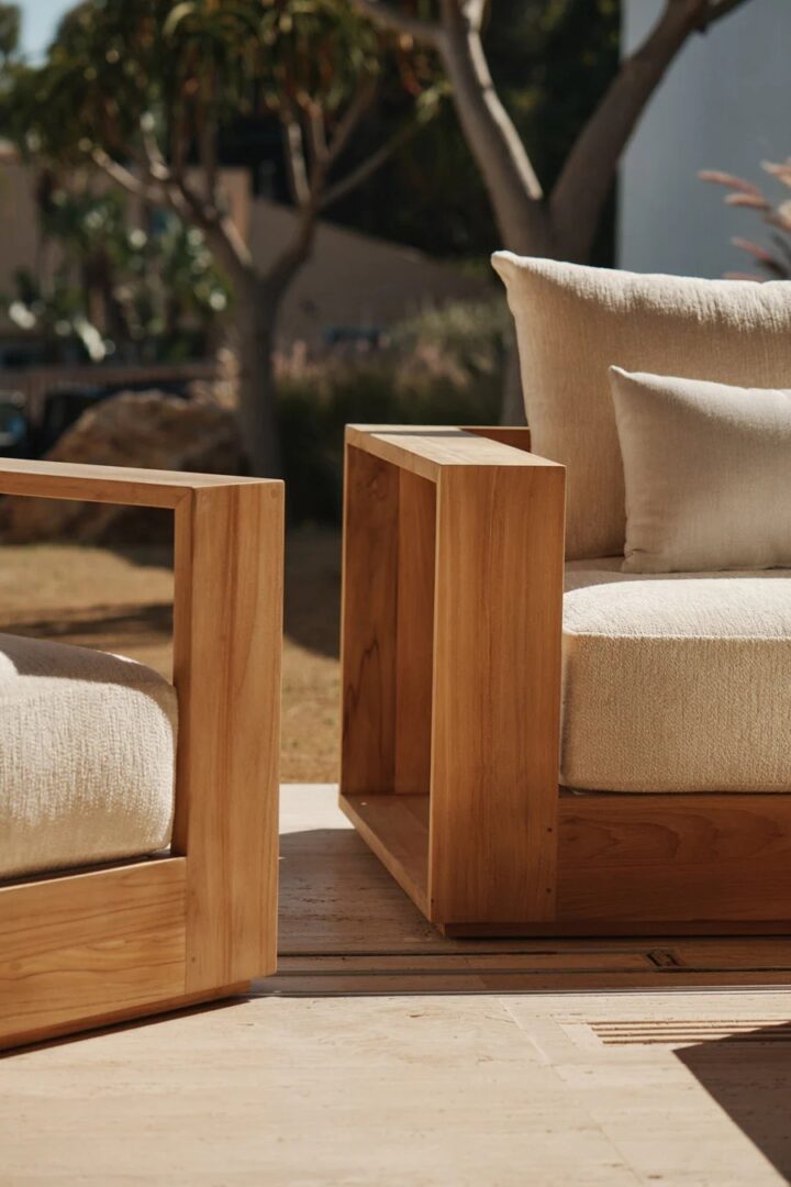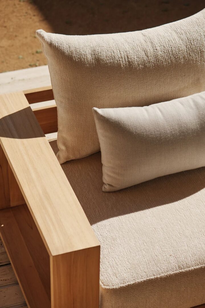 Our Hayman collection is a statement in simplicity with clean angles and modern styling. Defined by its wide arms, our low–profile Hayman Teak Lounge Chair was designed to be experienced — sink into ultimate relaxation with a cushion for deep seating available in a range of neutral tones supported by a Batyline sling suspension in White for added comfort, all crafted in a solid natural teak frame. Indoor comfort meets outdoor performance with this modern lounge chair made for a variety of patio and pool spaces. Pair it with an Ottoman to really kick back and unwind.