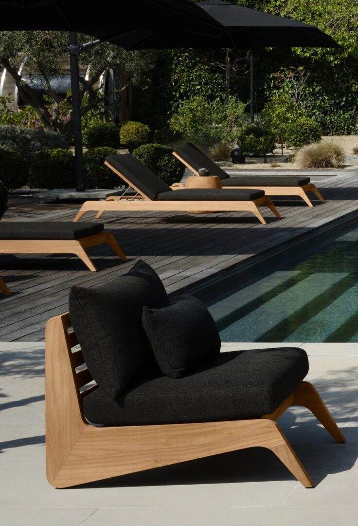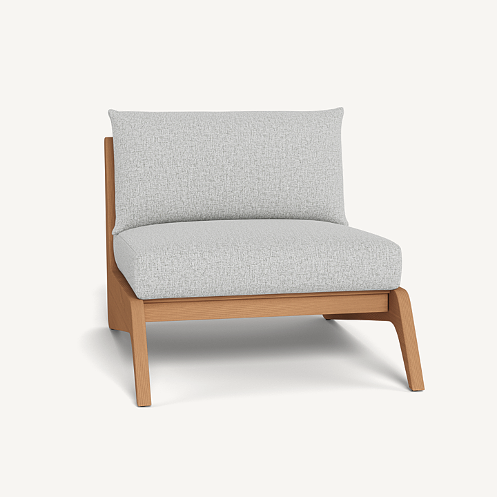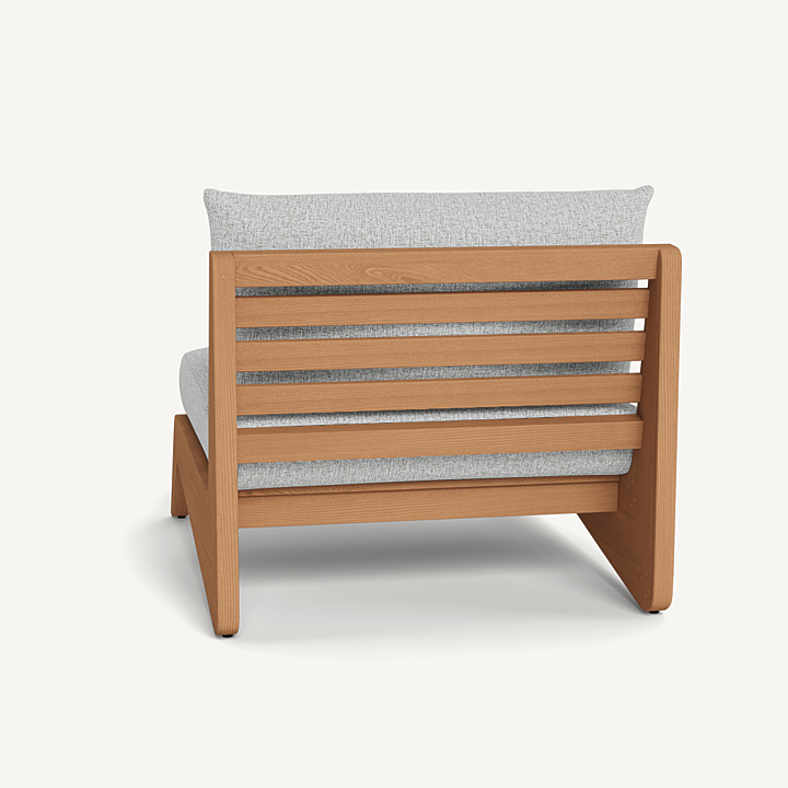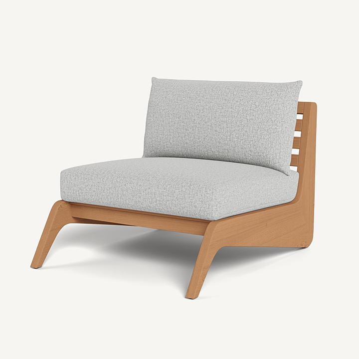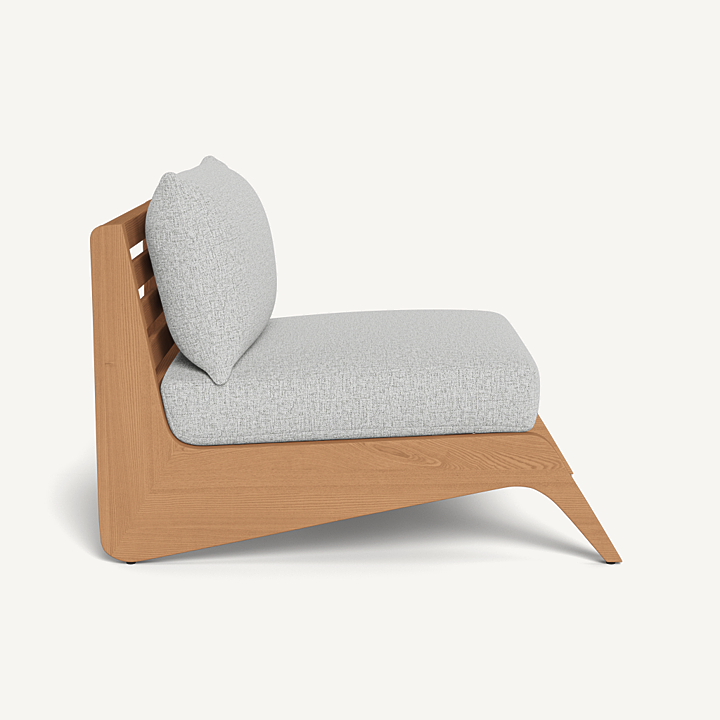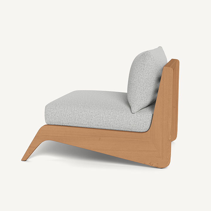 A collaboration with decorated interior designer Martyn Lawrence Bullard, our MLB collection balances modern proportions with a striking juxtaposition of outdoor materials. The MLB Easy Chair is a standout — enjoy a plush deep seat cushion supported by a slatted solid Indonesian teak frame featuring dynamic angled legs. From the side, a striking zig-zag shape adds intrigue. A truly versatile statement piece, the low sit makes it ideal for casual outdoor lounging or gathering around a fire table.