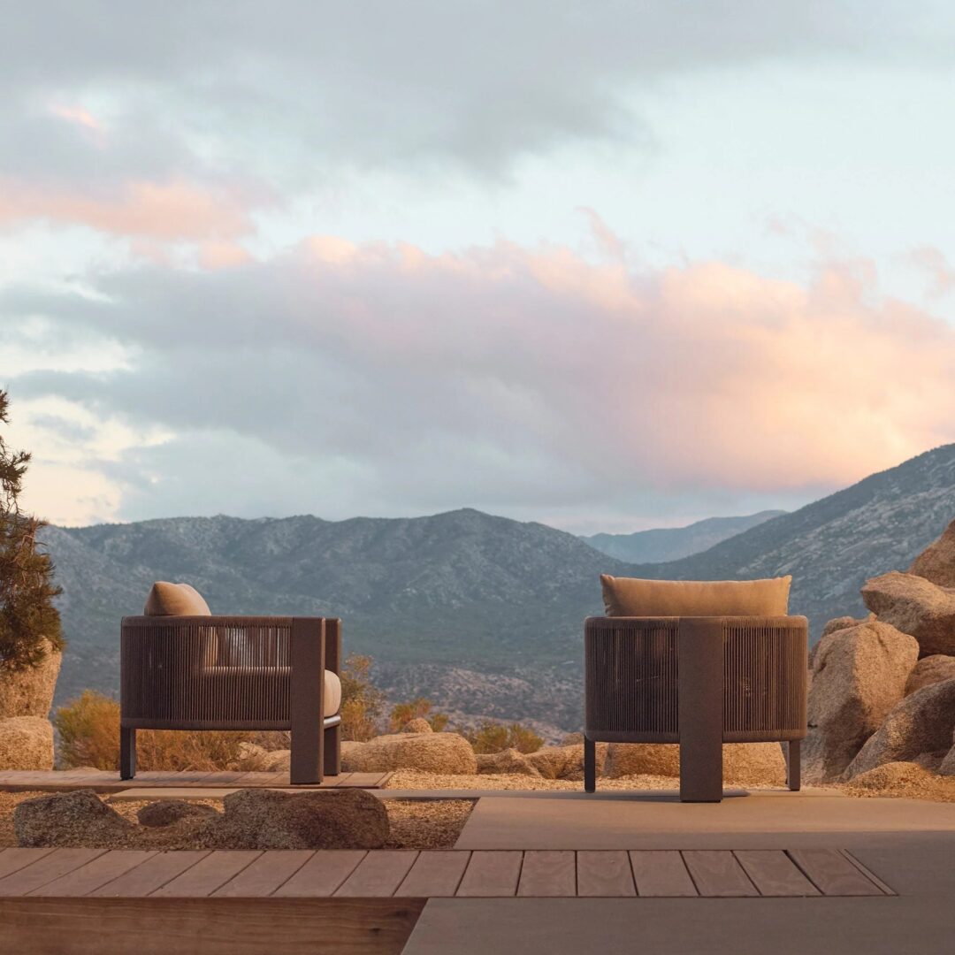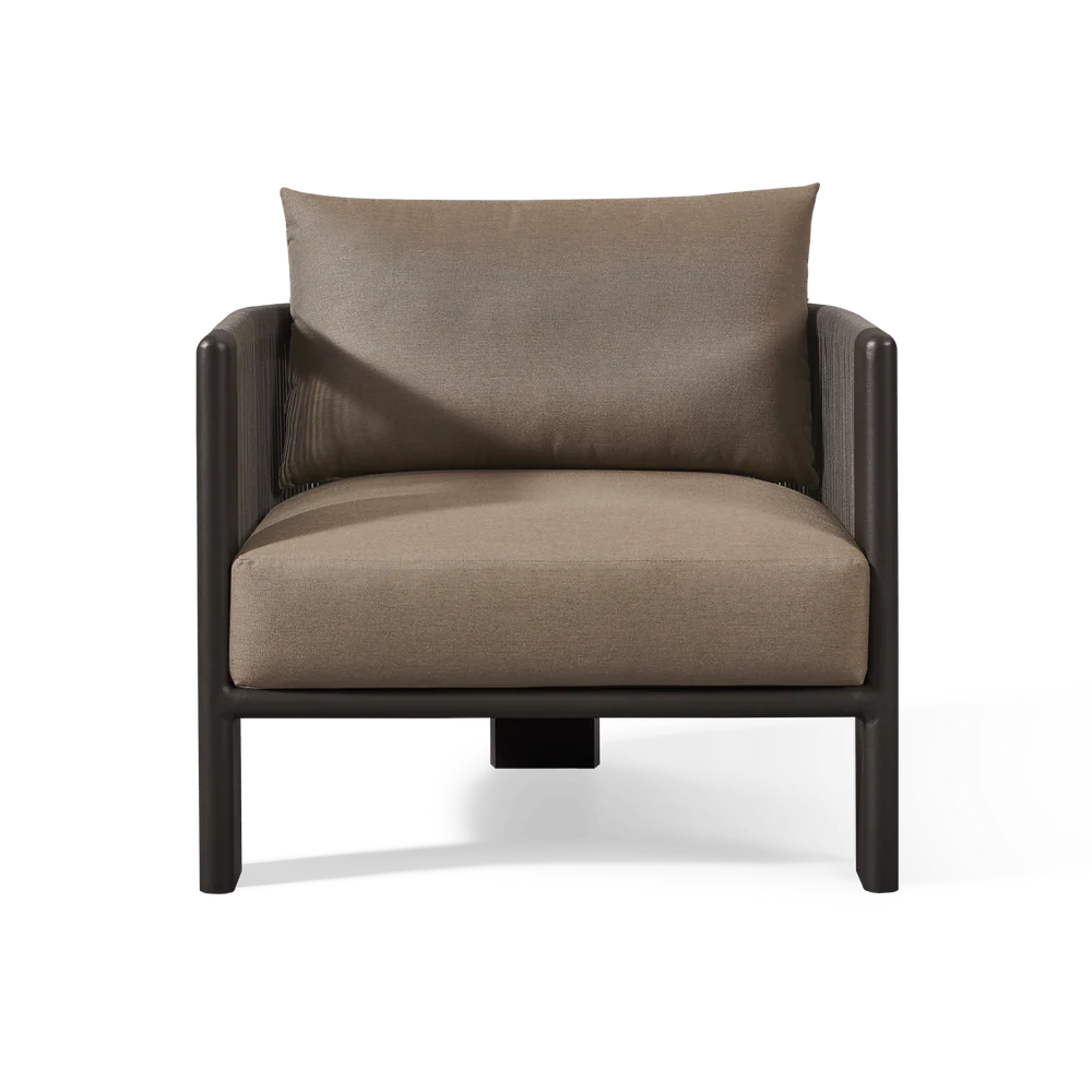A nod to Sydney’s iconic Palm Beach with its stately coastal pines. Rounded backs, vertical rope detailing and a harmonious mix of materials infuse classic silhouettes with modern elegance. Transitional in spirit, the Palm Beach Aluminum Lounge Chair is a refreshing update to our signature classics—enjoy a luxuriously low seat cushion with a knife–edge back pillow on a supportive slatted suspension in the just–released colorway of Stone. The powder coated extruded aluminum frame features vertically woven all–weather rope and plays with materials and form. In the back, a single leg adds style and interest, echoing the tripod construction of the collection’s chairs. Available in a swivel style, this comfort–driven piece seamlessly blends with many styles and in many outdoor spaces.
