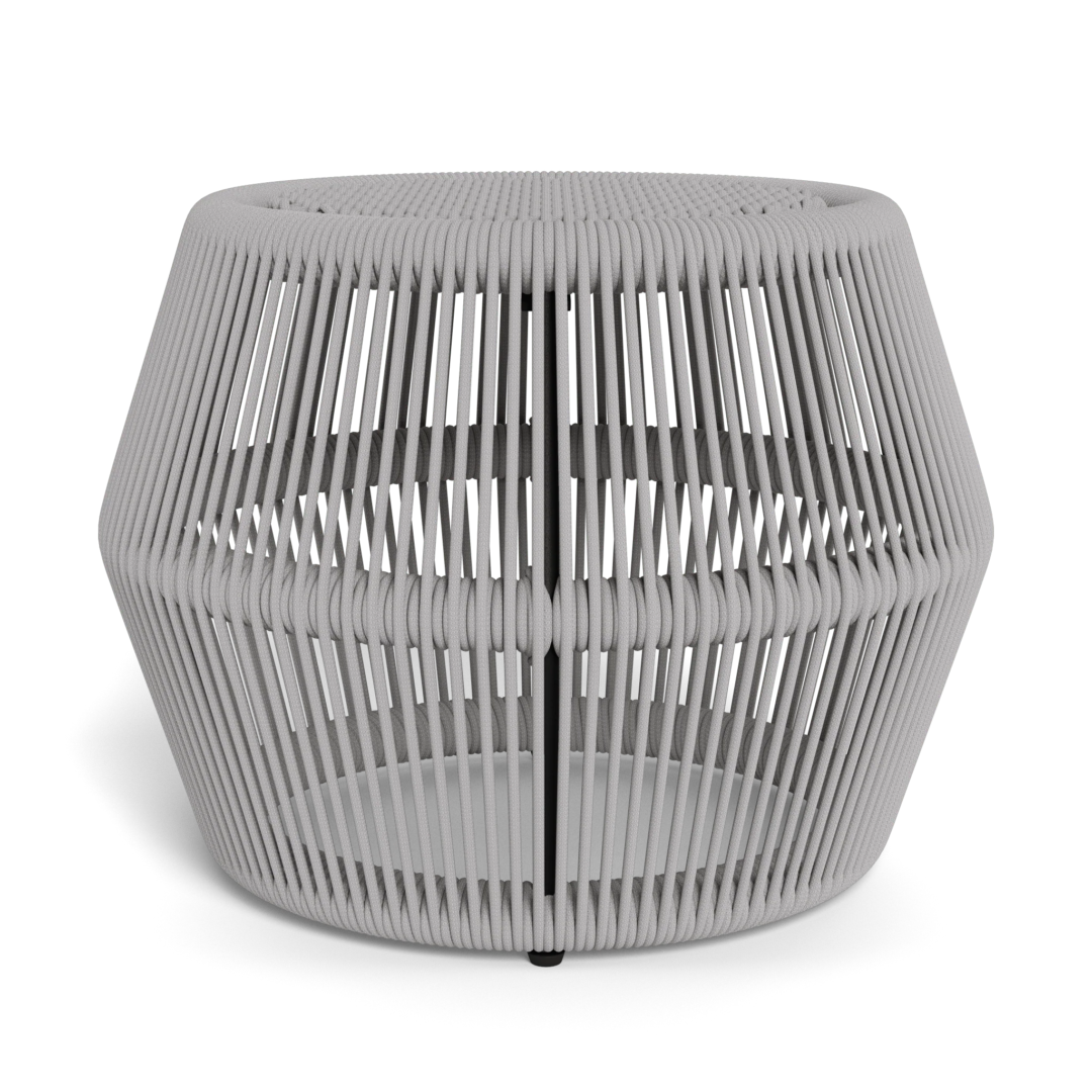 Our Hamilton collection pairs clean lines with practical design. The Hamilton Footstool is designed for kicking back — featuring an extruded aluminum tubular frame in Asteroid or Taupe wrapped in double–layered woven Olefin rope in Dark or Light Grey for a softness that's also weatherproof. An easy and fun–shaped alternative to a traditional ottoman, this effortless contemporary footstool is ideal for additional seating and also adds bonus visual interest to any outdoor design.