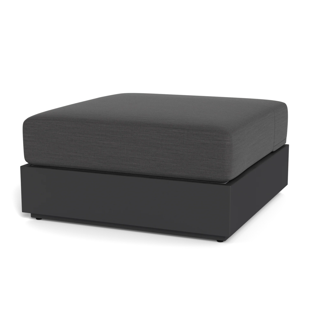 Our Hayman collection is a statement in simplicity with clean angles and modern styling. Our low–profile Hayman Ottoman was designed to be enjoyed — put your feet up and relax with a plush cushion in a range of neutral tones supported by a Batyline sling suspension in Silver or White for added comfort, all crafted in a powder coated extruded aluminum frame available in Asteroid or White. Indoor comfort meets outdoor performance with this geometric modern ottoman made for a variety of spaces and configurations.