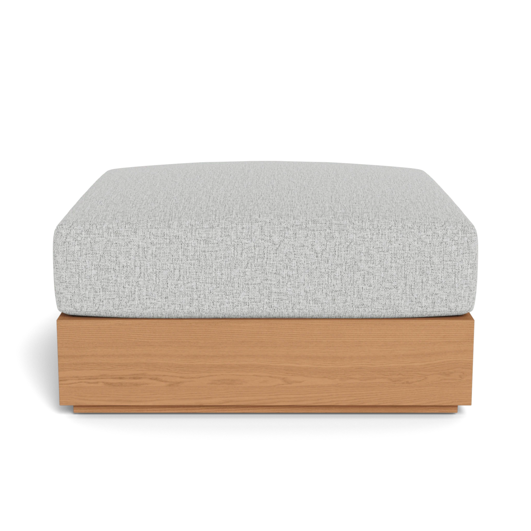 Our Hayman collection is a statement in simplicity with clean angles and modern styling. Our low–profile Hayman Teak Ottoman was designed to be enjoyed — put your feet up and relax with a plush cushion in a range of neutral tones supported by a Batyline sling suspension in White for added comfort, all crafted in a solid natural teak frame. Indoor comfort meets outdoor performance with this geometric modern ottoman made for a variety of spaces and configurations.