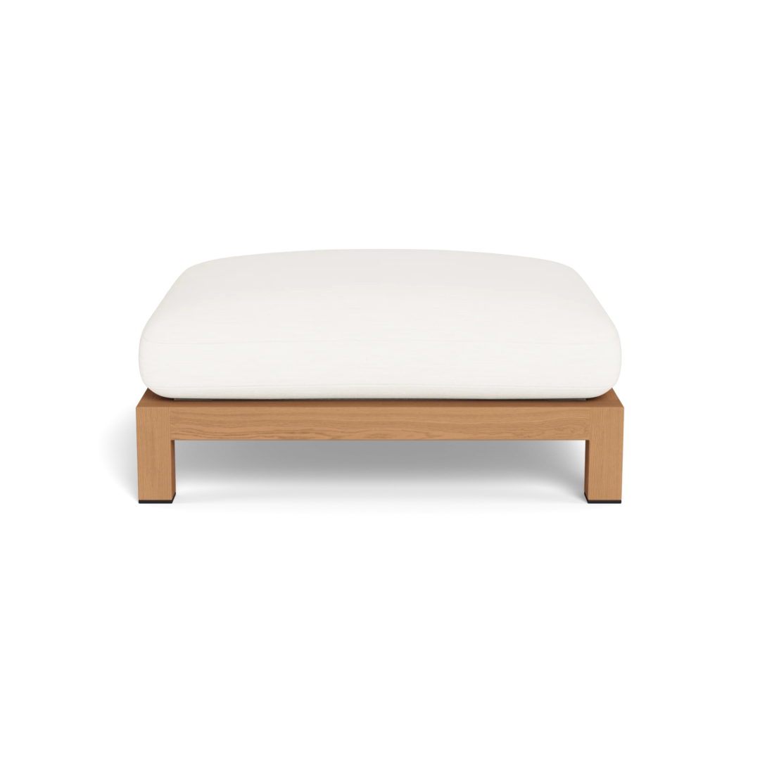 Our Pacific collection features clean lines with a California rustic essence. Part of our sectional collection, the Pacific Ottoman is streamlined comfort — put your feet up on a plush domed seat cushion available in a range of neutral tones supported by a Batyline sling suspension in White or Black for added comfort. Handcrafted from square beams of solid Grade A Indonesian teak in Charcoal or Natural, this modern outdoor ottoman effortlessly fits in any space and pairs with any Pacific component for instant extended seating.